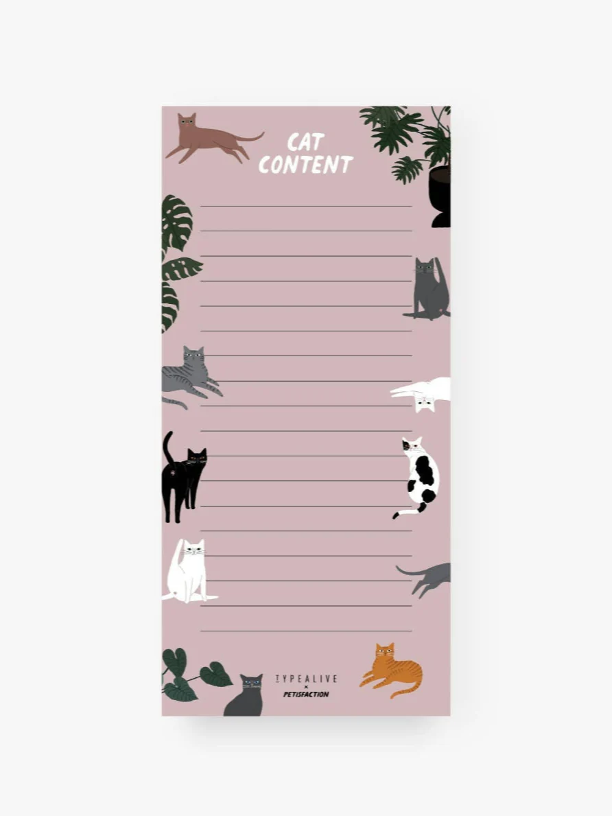 Smalt anteckningsblock med kattmotiv från Typealive. Ett block att skriva ner inköpslistan eller mindre att göra-listor. Ett block innehåller 50 ark av återvunnet och FSC™-certifierat papper.