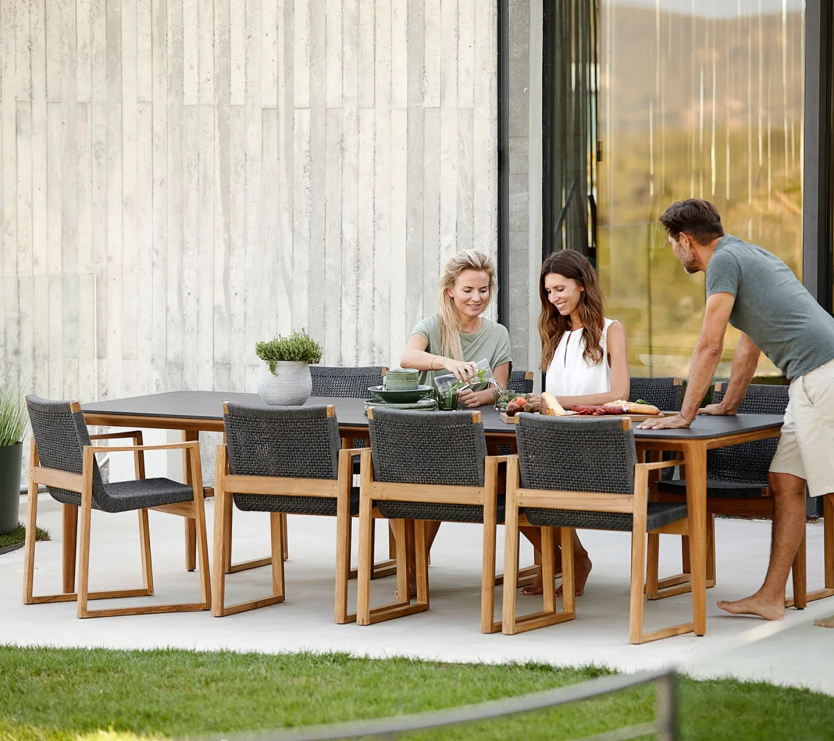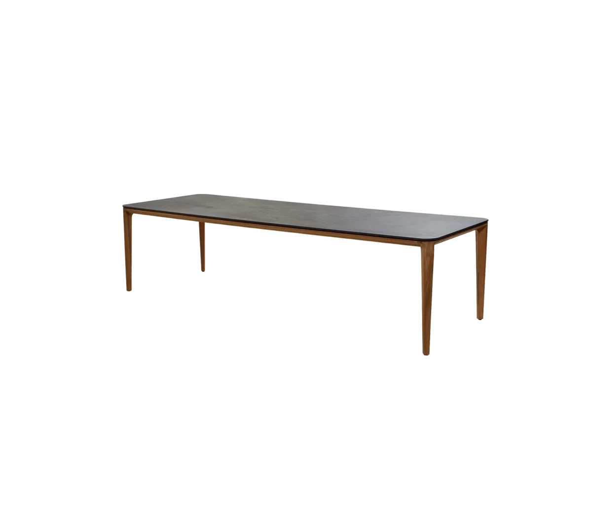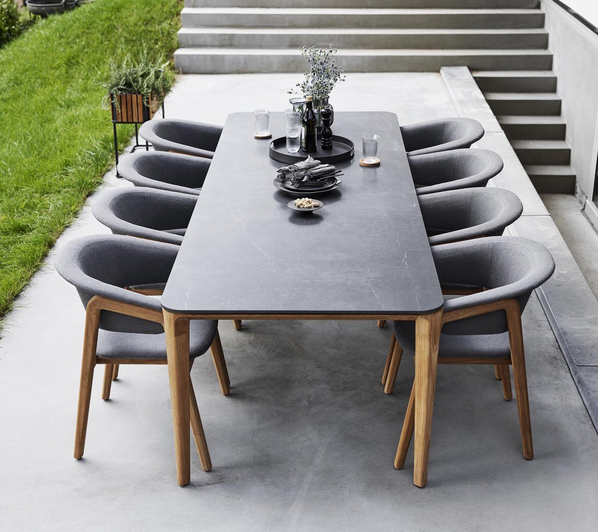 Aspect 280×100 cm är ett bord i absolut särklass tillverkat i hållbara och eleganta material. Aspect kombinerar teakträets värme och glöd med stilren och solid keramik. Aspect har designats av Cane-line Design, med fokus på att skapa en unik serie bord som kan matcha den växande kollektionen av exklusiva stolar för uterummet. Aspect är utformat med en stomme i teak, en kärna i solitt aluminium och bordsskiva i stilren keramik. Cane-line teak är godkänd och odlas enligt SVLK certifieringssystemet. Blandningen av trä och keramik ger ett exklusivt och utsökt uttryck som ger en fin inramning till en fantastisk utematplats.