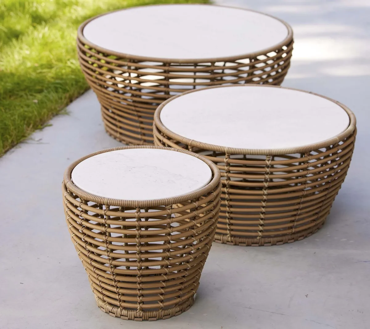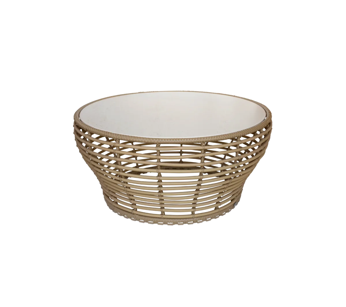 Soffbordet Basket är designat i samarbete med Søren Rose Studio. Ett soffbord inspirerat av naturen med sina runda former som ger ett organiskt designuttryck. Soffbordet Basket tillverkas i den väderbeständiga Cane-line Weave® på en varmgalvaniserad stålram med bordsskiva i snygg keramik. Kombinationen av de mjuka formerna och den råa keramiska bordsskivan skapar ett iögonfallande och raffinerat utseende för din utomhuslounge. Soffbordet basket finns i tre storlekar, som kompletterar varandra på ett vackert sätt.