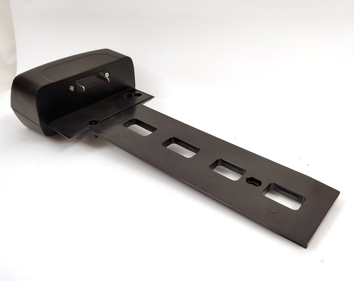 Fäste för Batavus batteri som vi kallar för Slim. Kommer i två delar, låsskenan som batteriet sitter fast i samt batterikontakten där batteriet ansluts.