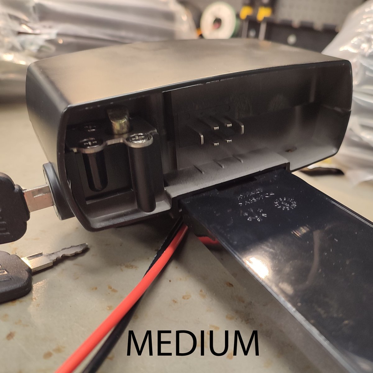 Batterifäste som passar t.ex. Seaside Bike 2017, Elegant Hjulia, Amslod, Saxonette, Sundvall och troligtvis någon modell från Outl1 och/eller Evobike. Den finns i två storlekar: