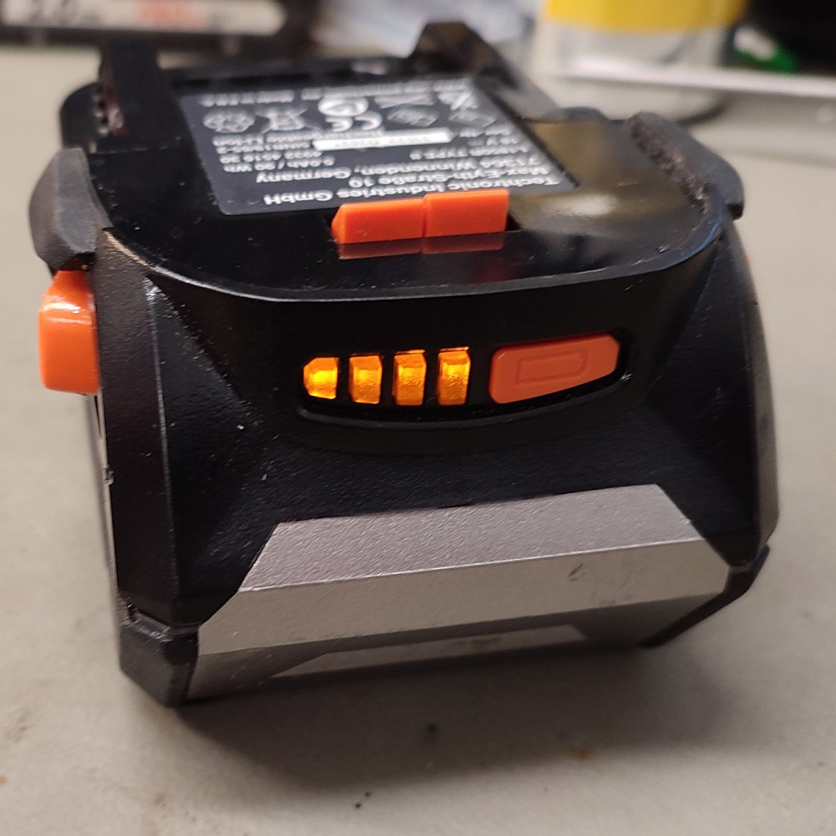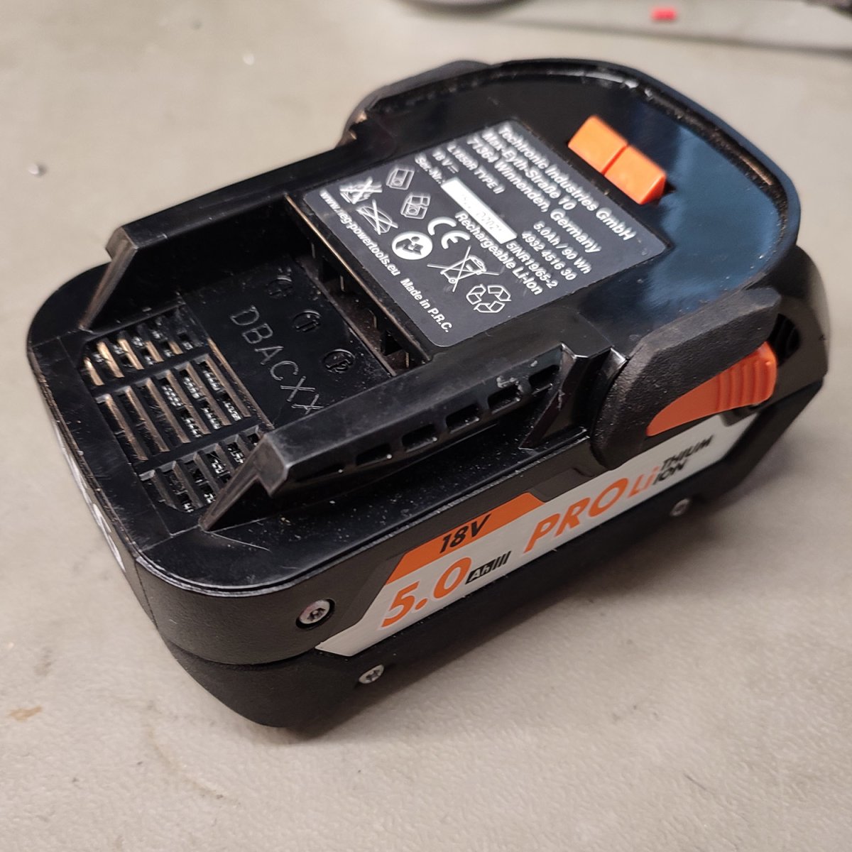 Beg. testat AEG 18V från 2021 med 4,33/5Ah kvar dvs 78 Wh. Nypris ca 1400 kr. Testad i laddare ej i maskin.