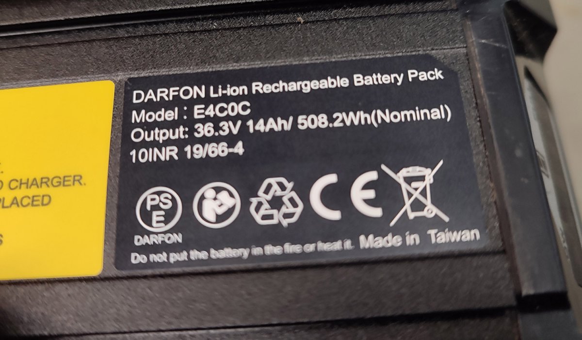 Beg Darfon batteri till en Rock Machine som vi köpt av en kund. Fungerar men är ej testat mot elcykel så rekommenderar att du kommer in och testar på plats. Vi har också en original laddare (Modiary). LG MJ1 celler. Nypris för batteri ca 10000 kr.