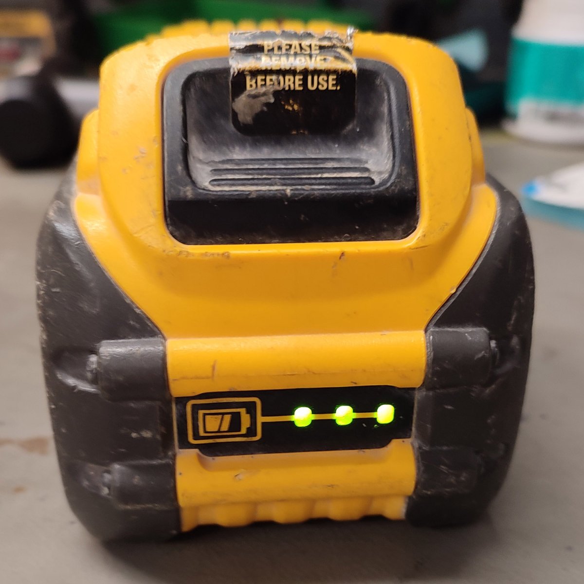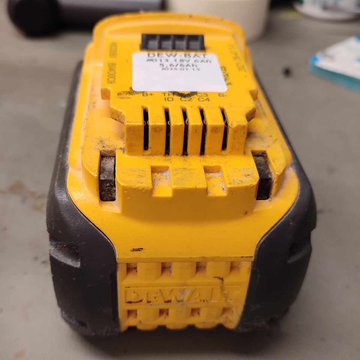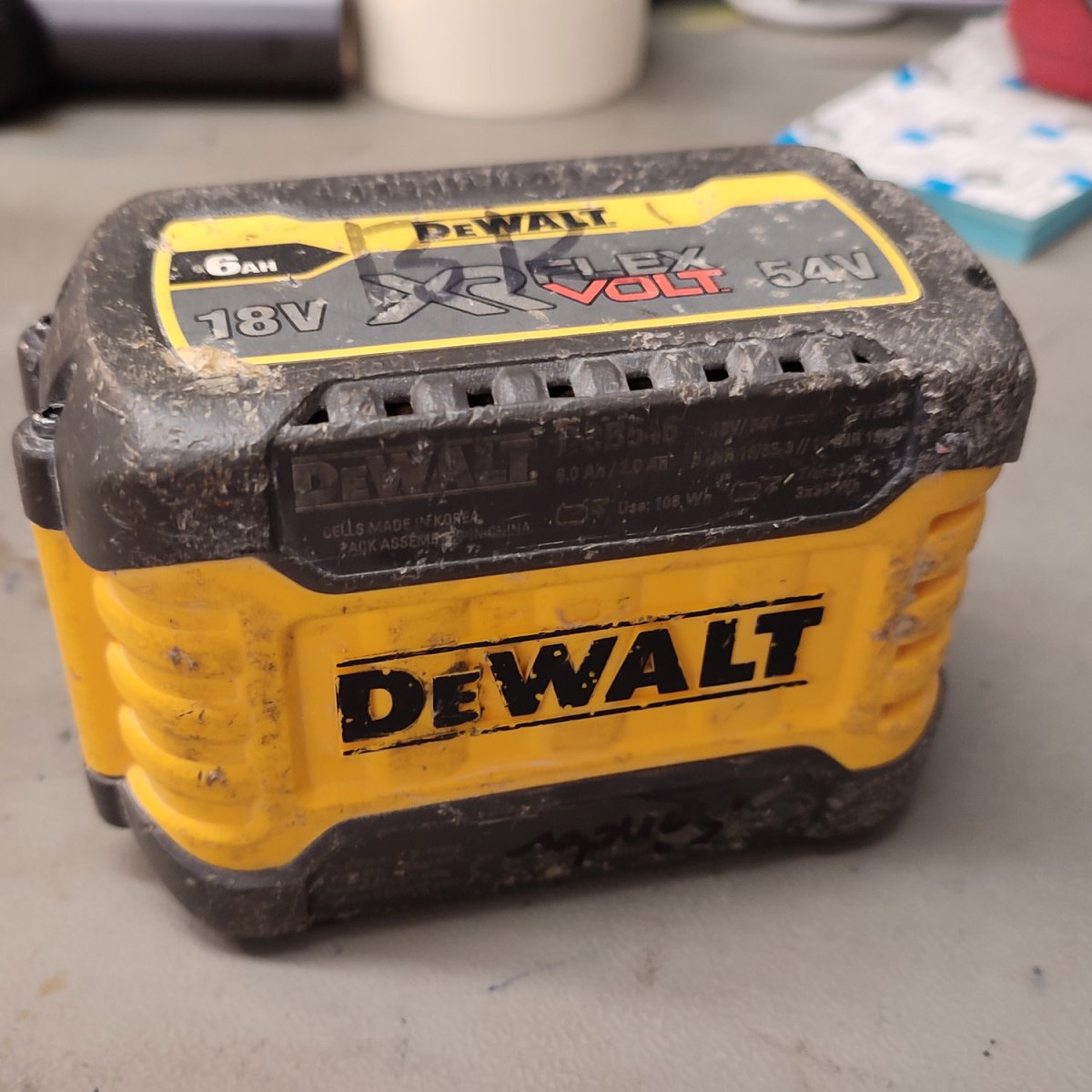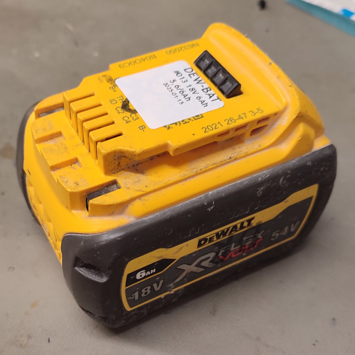 Beg. testat Dewalt Flex 18V från 2021 med 5,6/6Ah kvar (ca 93%) eller 103Wh. Nypris ca 1500 kr. Testad i laddare och maskin. Ej testad på 54V.