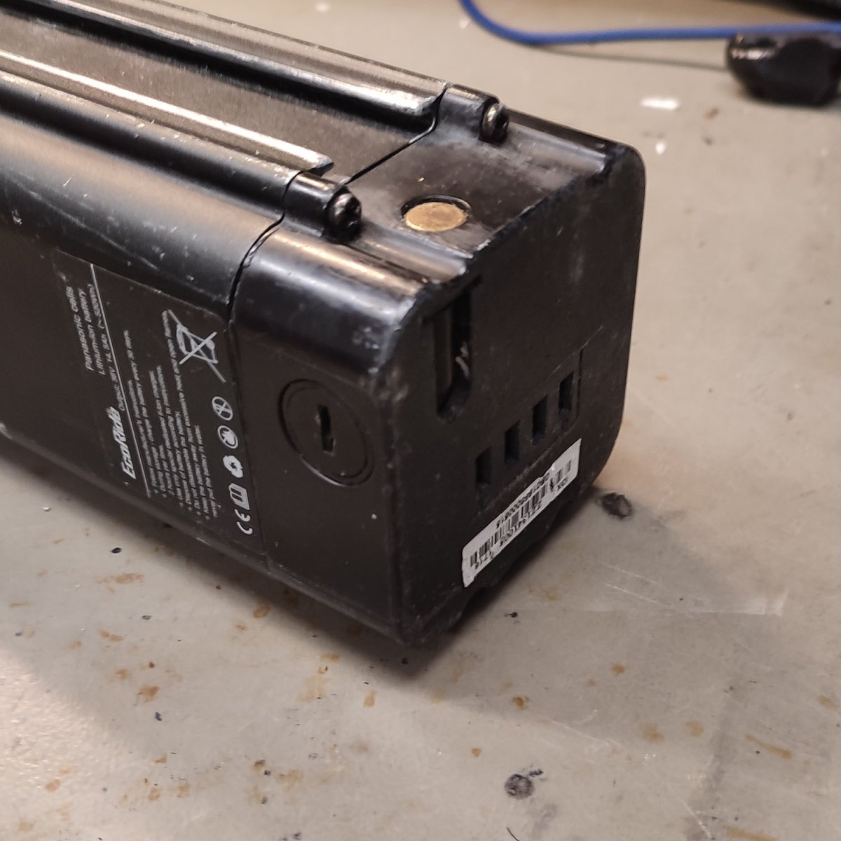 Beg batteri till Ecoride. 13,17Ah av 14,5Ah. Ingen nyckel till låset medföljer men vi säljer nya lås som du kan byta själv, litet lås standard.