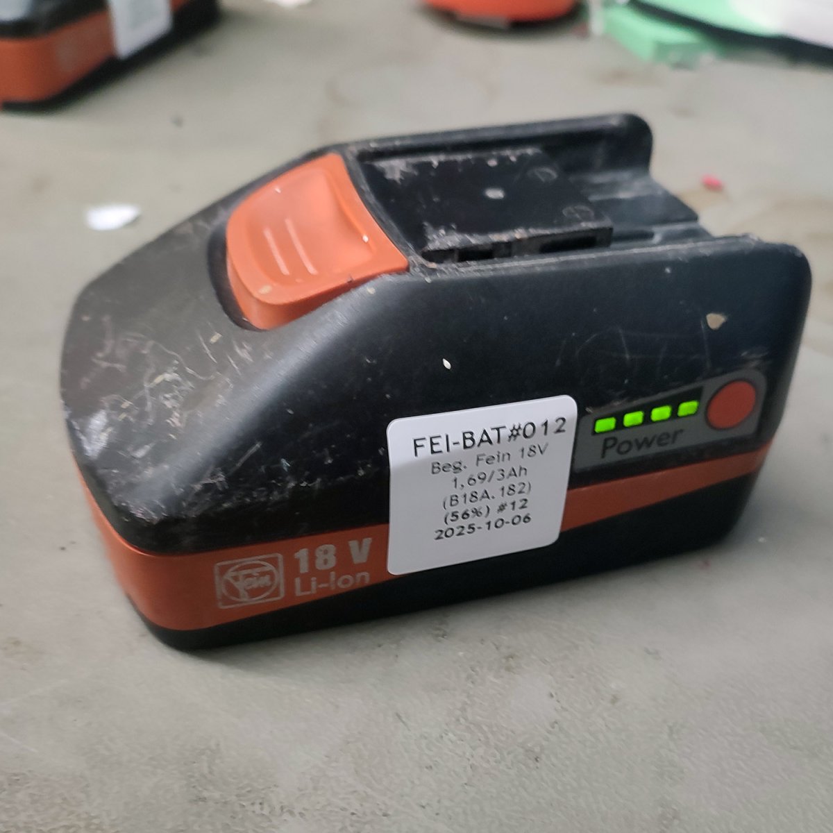 Beg. testat Fein batteri från 2019. Nypris ca 800 kr. Testad i laddare ej i maskin. Säkringen är bytt.
