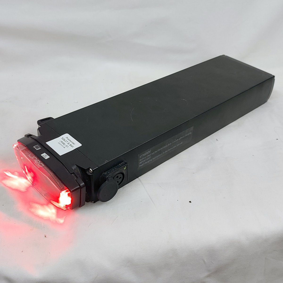 Begagnat testat batteri med 8,3/8,8Ah (304 Wh). Passar de flesta promovec. 3 polig laddport, lampan fungerar. Nypris 5200 kr.