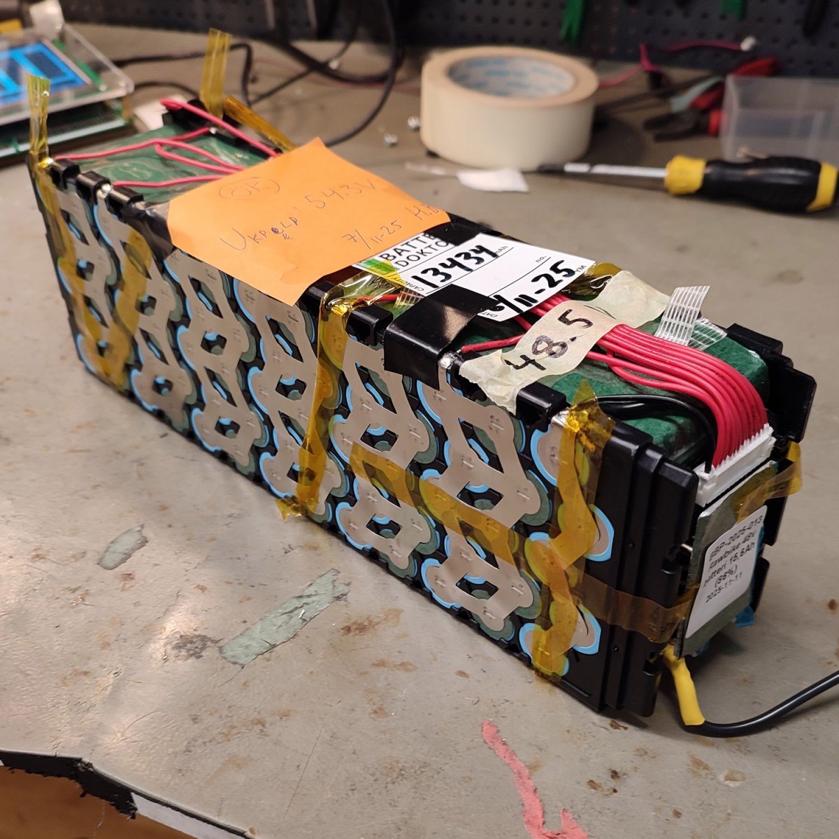 Beg batteri kapacitetstestat till 13,434/15,6Ah. Byggt med lg mh1 celler MED bms. Mått ca 280*66*93MM.