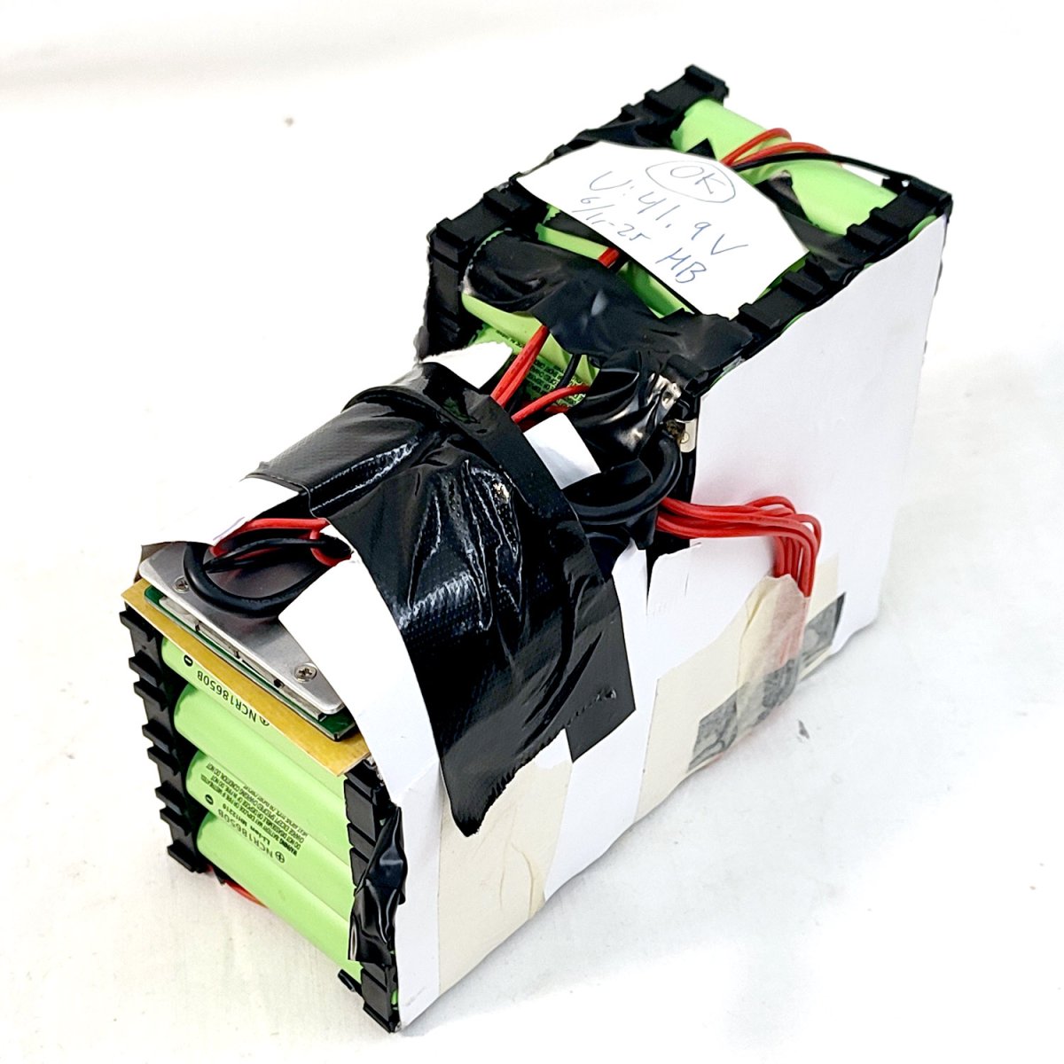 Begagnat och testat. Har 12,14Ah av nyskickets 13,4Ah kvar, så i fint skick, Panasonic B celler. Med Best Way 15A/8A BMS separata portar. Mått ca 165*127*75mm.