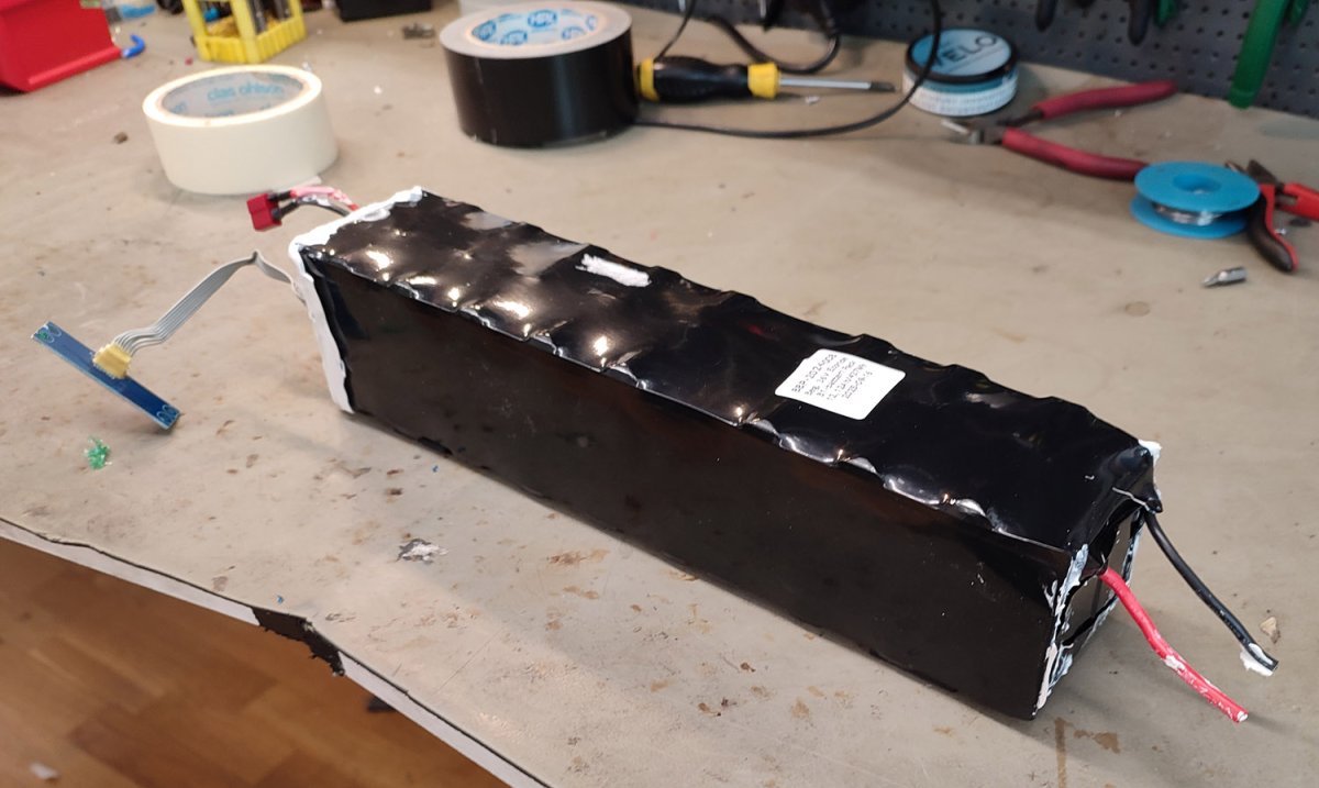 Begagnat och testat. Har 12,12Ah av nyskickets 14,5Ah kvar, så i hyffsat skick, oftast är det Panasonic PF celler i dessa! indikator medföljer. Från ett Spin Tech B1 Power Pack 520. ca 35,5cm långt. INGEN UART PÅ DENNA!
