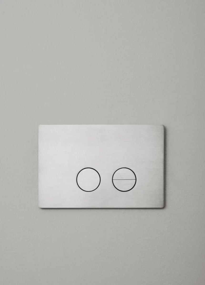 Betjäningsplattan är tillverkad i borstat rostfritt stål (AISI 316), en kvalitet som säkerställer lång hållbarhet och motståndskraft mot korrosion – perfekt för både privata och offentliga miljöer.