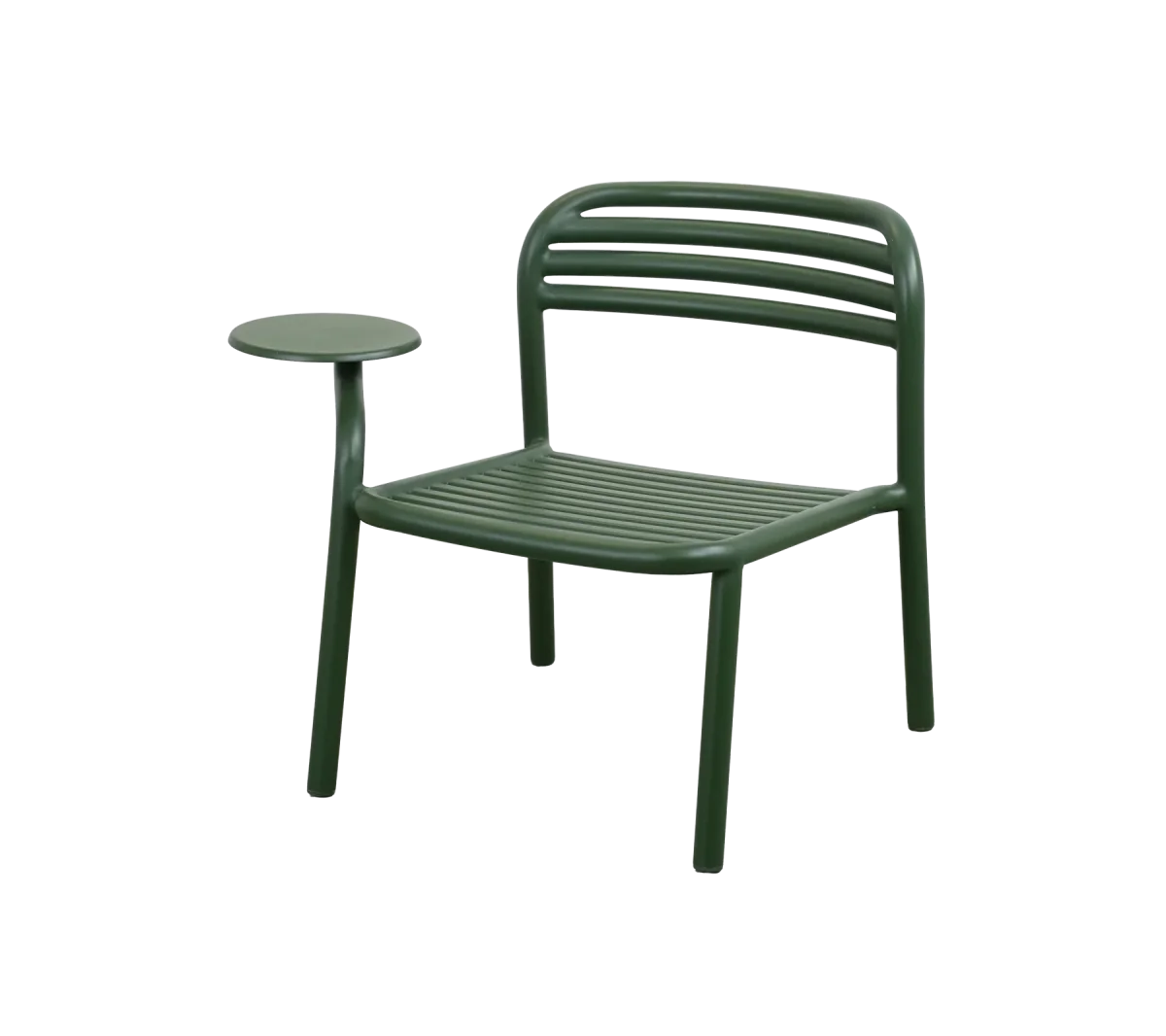 Bliss loungefåtölj med sidobord förenar form och funktion på ett elegant sätt och skapar nya möjligheter för avkoppling utomhus. Fåtöljen är tillverkad i pulverlackerad aluminium, och det integrerade sidobordet ger plats för kaffe, en bok eller små inredningsdetaljer – en praktisk och stilfull lösning i loungeområden.