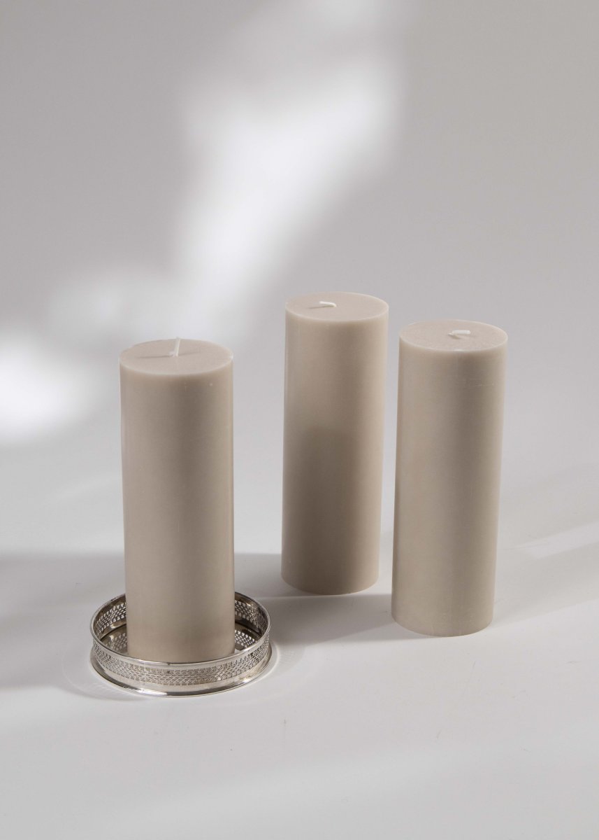 Sandfärgat blockljus i stearin. Samma kulör som de sandfärgade kronljusen, också från Tine K.