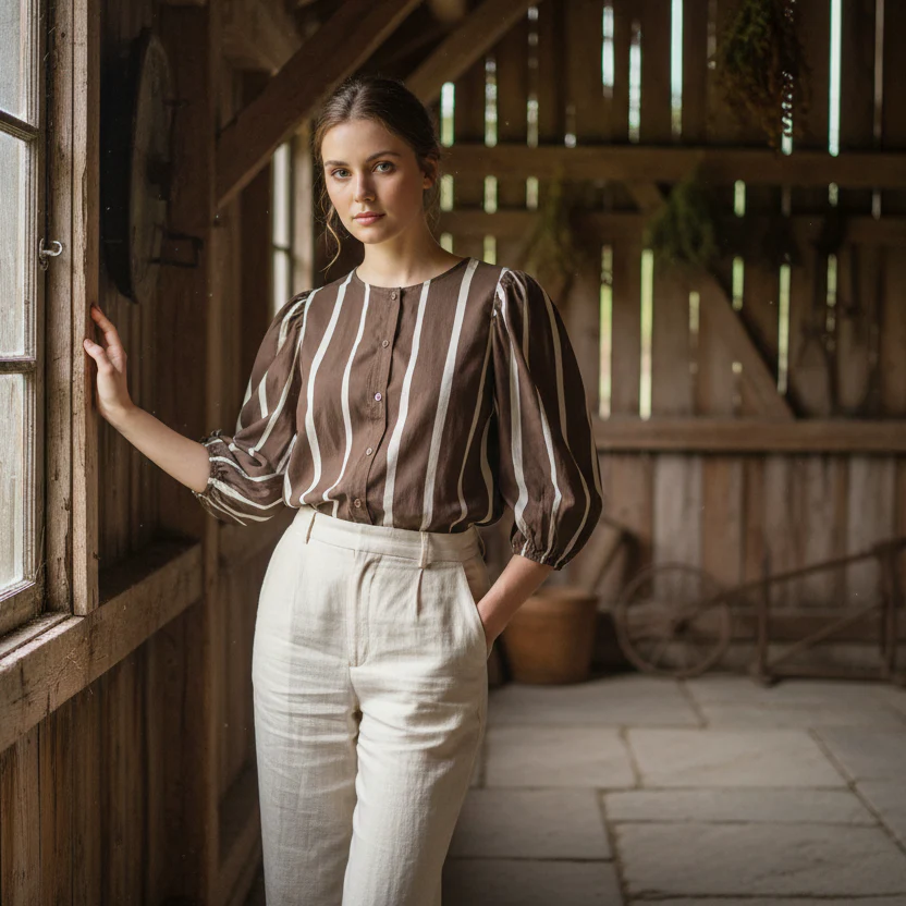 Evelina är en supersöt skjorta från Marta du Château med unikt tryck och feminina ballonärmar. Den har genomgående knappar och en tidlös design som passar perfekt tillsammans med jeans och sneakers för en avslappnat chic look.
