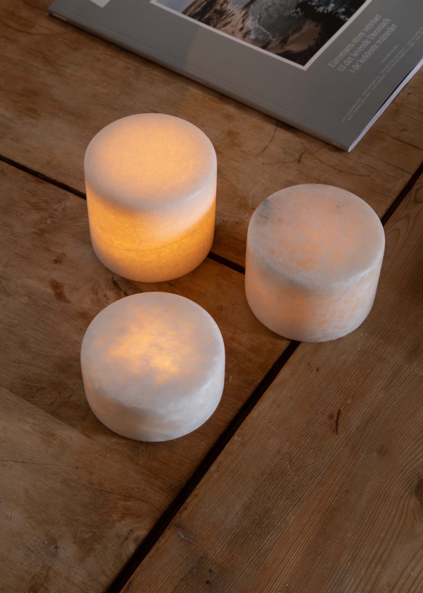 Ljuspuckar i marmor. Finns i 3 storlekar i 2 olika matta färger. Marmor är ett levande stenmaterial vilket gör varje ljuslykta unik. Två synliga lägen ON/OFF med timer i mitten. Används mittenläget så är Marble är tänd i 6 H, släcks automatiskt för att tändas igen 18 H senare. 2 batterier AA (ingår ej)