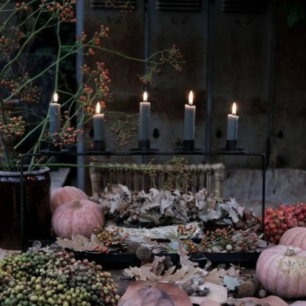 Skapa en varm och inbjudande känsla i hemmet med Ljusstake Plantera – en rustik ljusstake i metall med plats för fem kronljus. Den vackra designen i antiksvart gör den lätt att kombinera med olika stilar och perfekt att dekorera efter årstid – fyll den med mossa, grenar, blommor eller juldekorationer för en personlig touch.