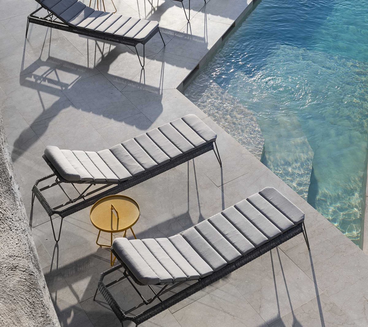 Breeze solsäng har designats av designduon Strand+Hvass. Solsängen är tillverkad i det unika Cane-line Weave®, som ger ett transparent och lätt utseende i kombination med hög komfort, eftersom materialet anpassar sig efter kroppens konturer och rörelser. Solsängen är elegant och har en klassisk konstruktion i aluminium, vilket ger Breeze en unik lätthet och elegans. Materialet är UV-tåligt och slitstarkt och kräver minimalt med underhåll. Cane-line Weave® är tillverkat för alla väderförhållanden och materialet bibehåller sin färg och form i många år. Dynan till Breeze solsäng är tillverkad i det supermjuka och sköna tyget Cane-line Natté.