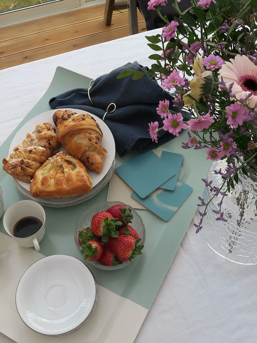 Designad i color-blocking stil blir brickan. mer än bara funktion, den blir en tydlig inredningsdetalj. Låt den stå framme på bordet som bas för ljus och stilleben, eller använd den för att skydda ytor från spill och märken. Praktisk, tålig och formgiven för att hålla över tid.