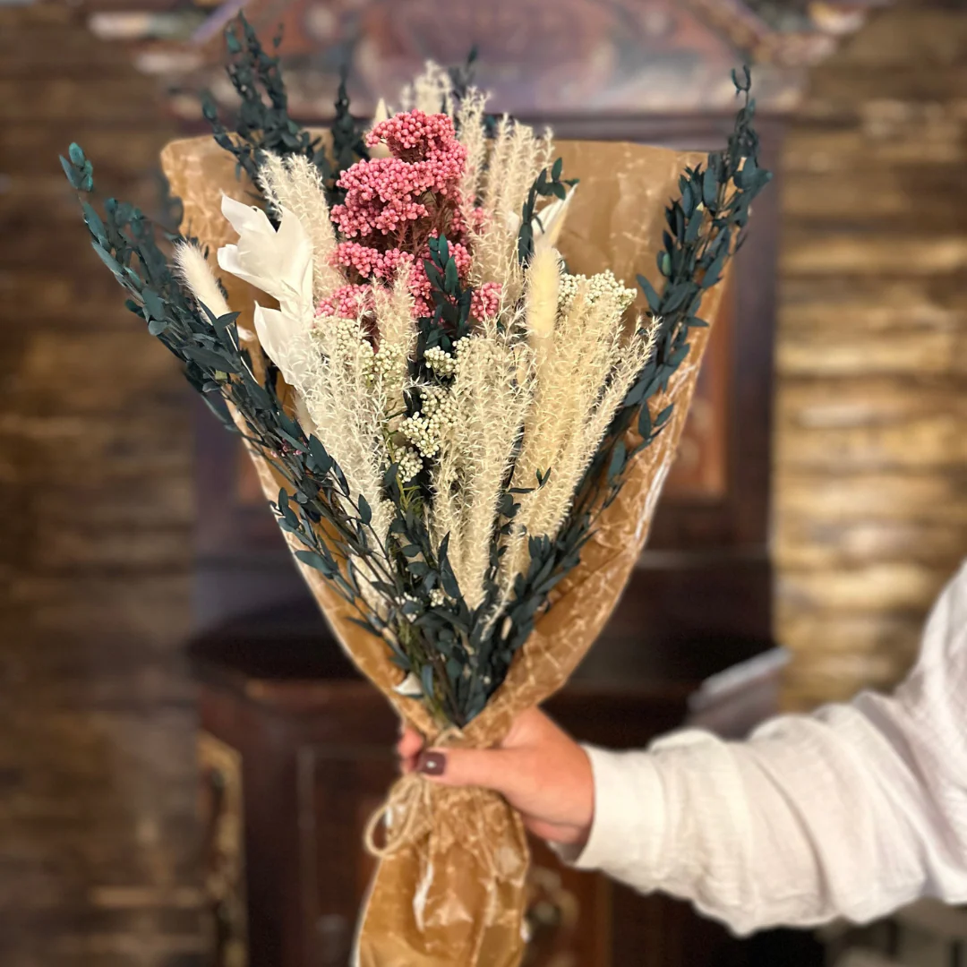 En evighetsbukett är mer än bara en bukett – det är ett konstverk som bevarar naturens skönhet i sin mest hållbara form. Denna bukett är varsamt sammansatt av noggrant utvalda torkade och konserverade blommor, där varje detalj vittnar om hantverk, estetik och omsorg.