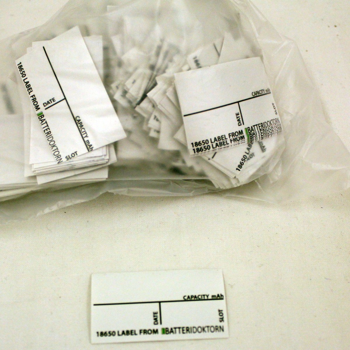 Vi testar 14000 stycken 18650 celler och året och har utvecklar våra egna etiketter för att tydligt kunna skriva ner resultatet. Vi har gjort en lite mindre version för dig som också testar mycket celler och vill kunna dokumentera testerna noggrant med kapacitet, datum och testkanal.