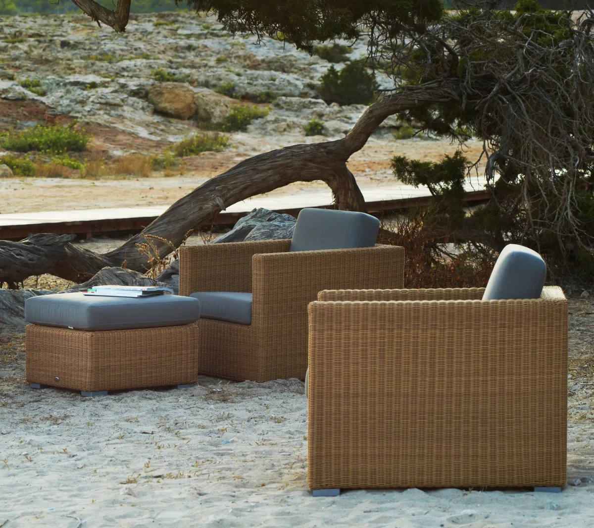 Denna pall fungerar perfekt med fåtöljen eller som ett fint lågt soffbord med antingen en glasplatta eller den snygga Club brickan. Ett optimalt val för dem som önskar stor flexibilitet i deras trädgårdsmöbler. Fås i natur och graphite.