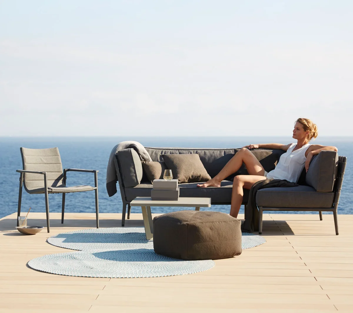 Cane-line Conic-serien består av specialutvecklade loungemöbler i syfte att göra ditt liv så bekvämt som möjligt, så att du kan njuta av din tid utomhus med familj och vänner. Conic finns i bekväma Cane-line-tyger med det praktiska QuickDry & Airflow-systemet. Tillsammans skapar detta en loungegrupp med den bekväma mjuka känslan du känner från inomhusmöbler och med bekvämligheten för möbler som är extremt underhållsvänliga.