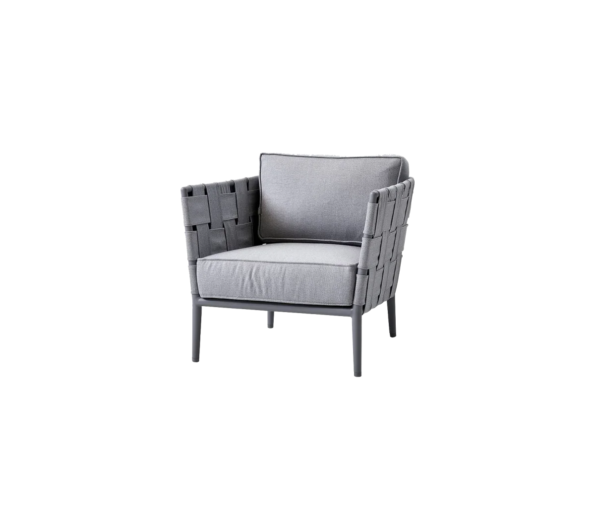 Conic lounge fåtölj är ett resultat av en lång designprocess där designers och hantverkare spenderar timmar att få rammen och kuddarna precis rätt. Fokus har varit på en harmonisk design med hög komfort. Dynorna ger stor komfort och har referenser tillbaka till den klassiska lounge stoldesignen. Conic lounge stolar levereras med all-weather-kuddar vilket gör att man maximerar tiden att spendera utomhus eftersom dynorna dränerar snabbt efter en regndusch.