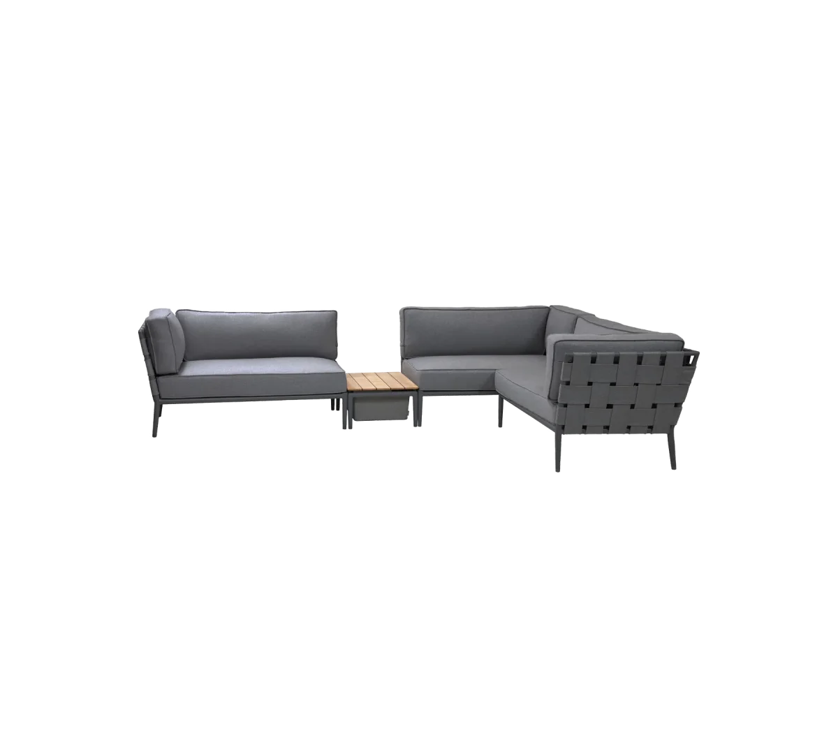 Cane-line Conic-serien består av specialutvecklade loungemöbler i syfte att göra ditt liv så bekvämt som möjligt, så att du kan njuta av din tid utomhus med familj och vänner. Conic finns i bekväma Cane-line-tyger med det praktiska QuickDry & Airflow-systemet. Tillsammans skapar detta en loungegrupp med den bekväma mjuka känslan du känner från inomhusmöbler och med bekvämligheten för möbler som är extremt underhållsvänliga.