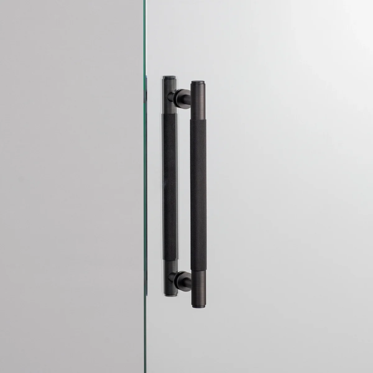 Detta dubbelsidiga dörrhandtag kan bl.a. används på skjut- och svängdörrar i glas och annat material. Handtaget är dekorerat med det populära diamantslipade mönstret (cross) från Buster + Punch.