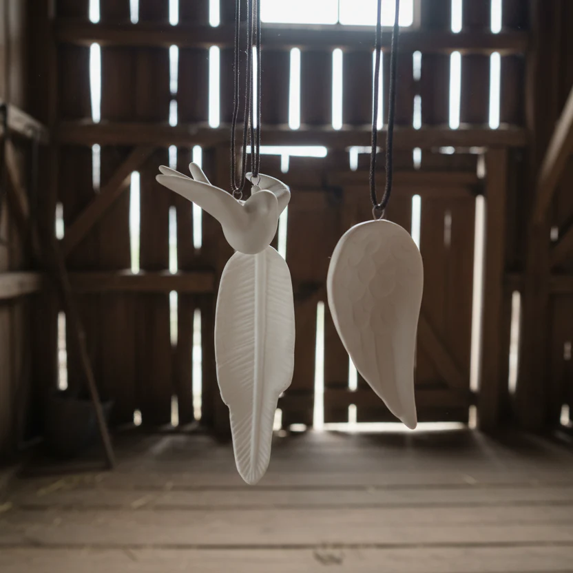 Skapa en stilren och elegant dekoration med denna hängande porslinsvinge. Den tidlösa designen gör att vingen kan hängas både inomhus och utomhus, och sprider en harmonisk och dekorativ känsla i hemmet, på verandan eller i trädgården.