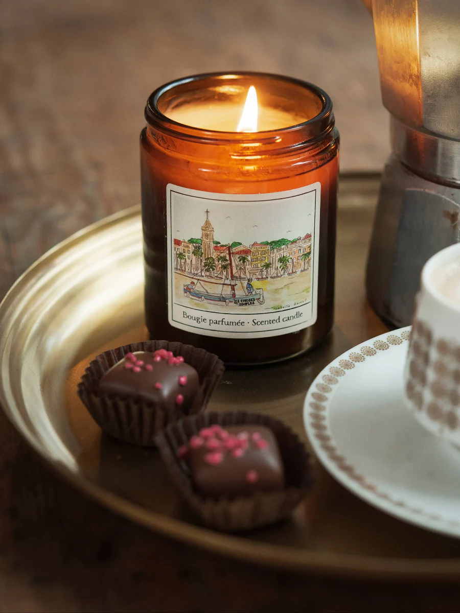 Ljuset är tillverkat av 100% sojavax som tillverkats för hand i Provence, Frankrike. Den bärnstensfärgade glasburken med svart lock ger ett tidlöst uttryck som smälter in i hemmet, en detalj som skapar stämning även när lågan är släckt.