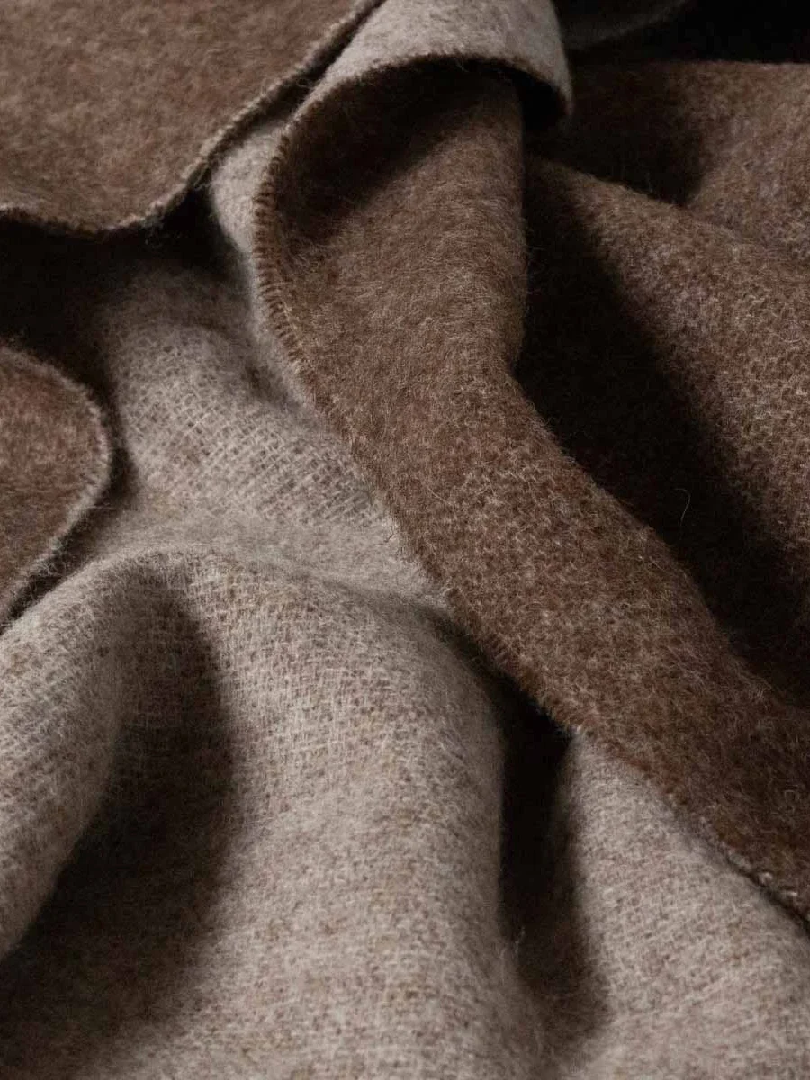 Den tvåfärgade designen ger ett levande men tidlöst uttryck, medan de dekorativa fransarna i kortändarna tillför en subtil rörelse. Vändbar, vilket blir till två olika uttryck i en och samma textil. Ett kvalitetsplagg för hemmet i fin nyzeeländsk ull, känd för sina värmande och slitstarka egenskaper.