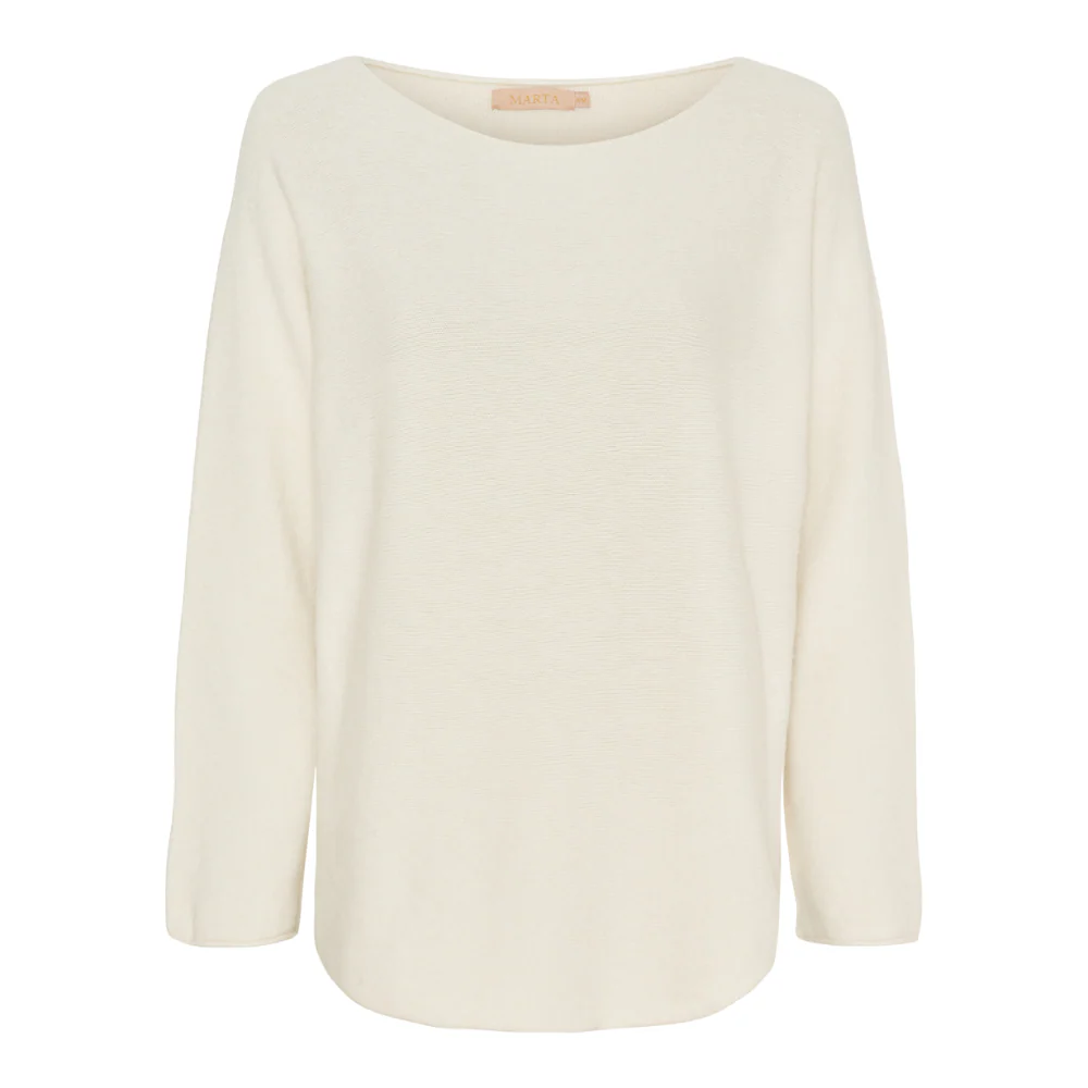 Dagmar är en skön, finstickad tröja i en elegant cremevit nyans. En vacker och tidlös modell som enkelt kan stylas både upp och ner – lika snygg till chinos och jeans som till kjol.