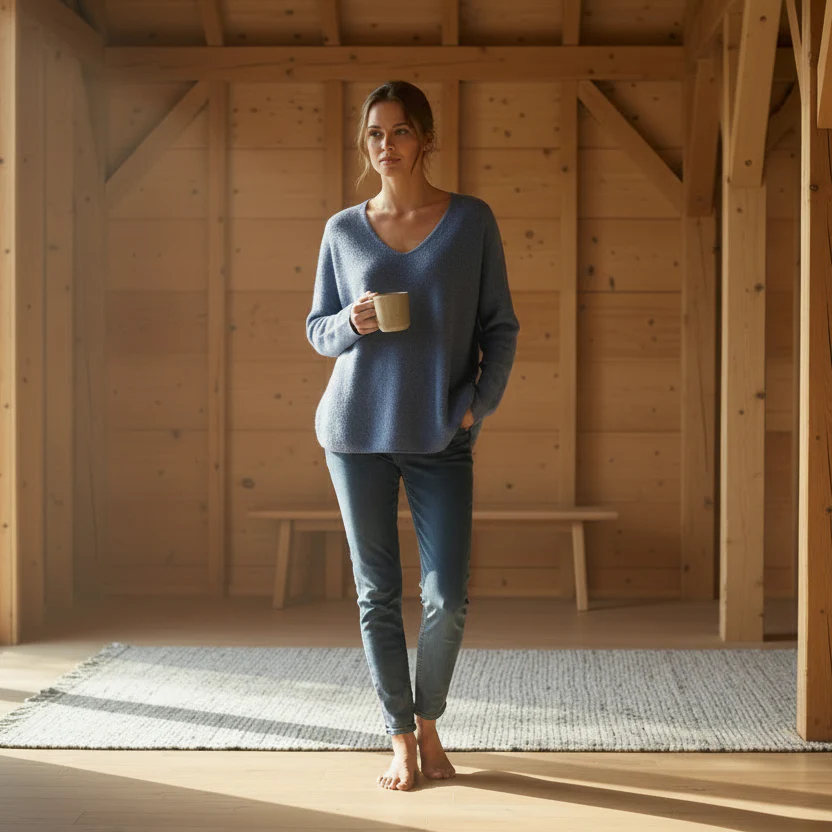 Den stickade tröjan Hella är en elegant och sofistikerad finstickad tröja, perfekt för de som uppskattar både komfort och stil. Den har en mjuk och behaglig känsla mot huden, tack vare det högkvalitativa garnet som används. Tröjan har en enkel, ren design med en smal passform som smickrar figuren utan att kännas åtsittande. De subtila stickade detaljerna ger tröjan en tidlös och klassisk look, vilket gör den lätt att kombinera med olika plagg.
