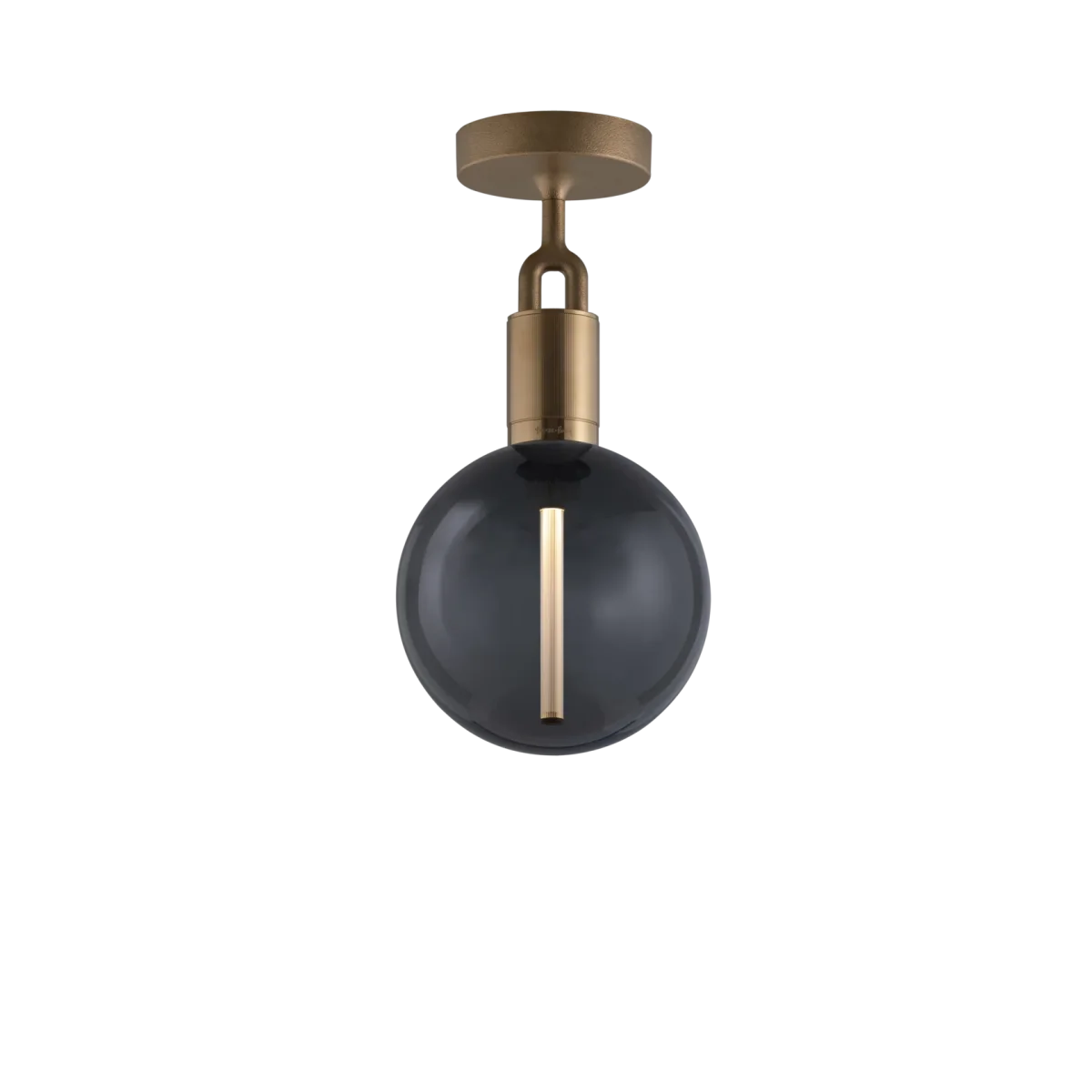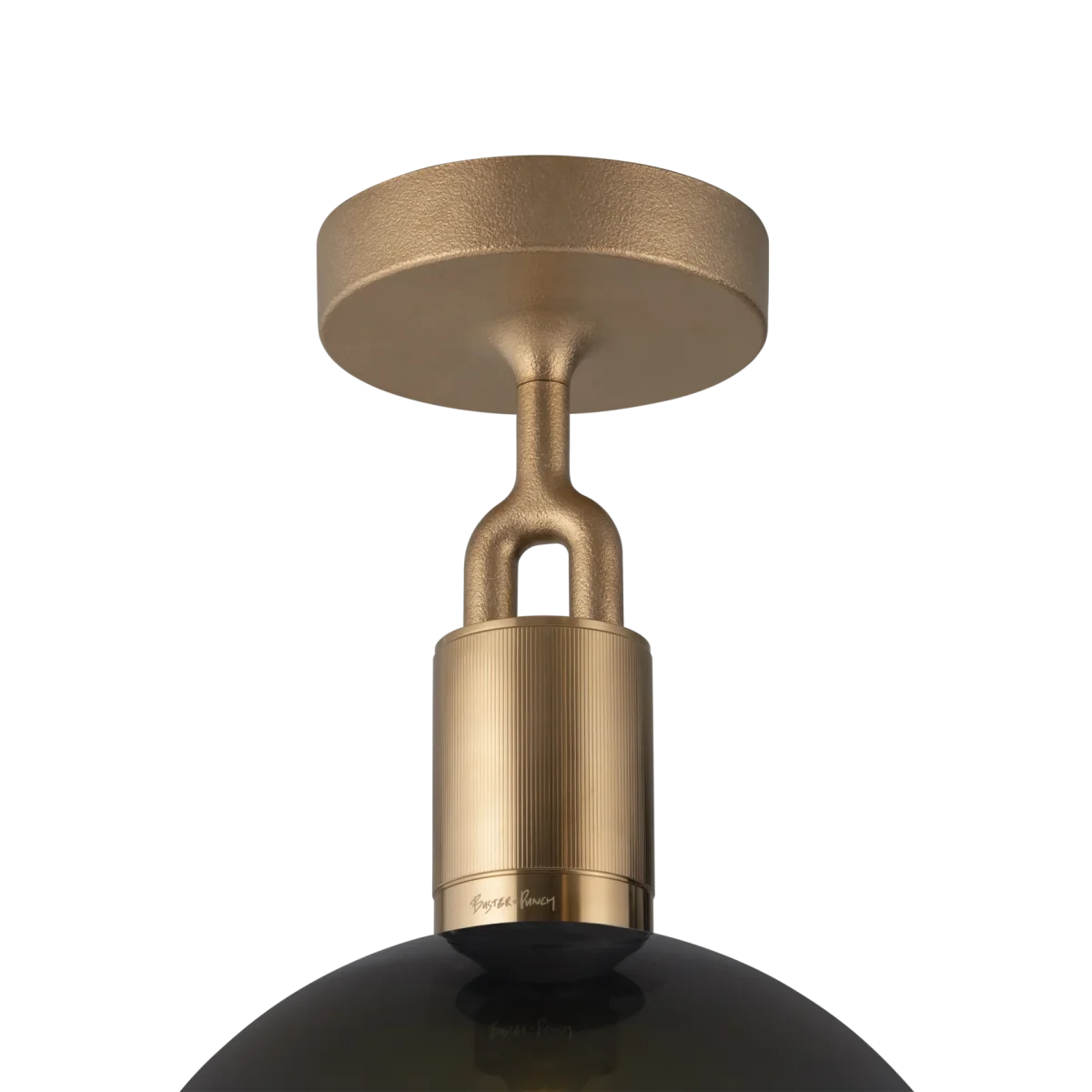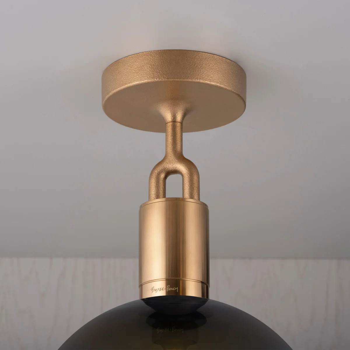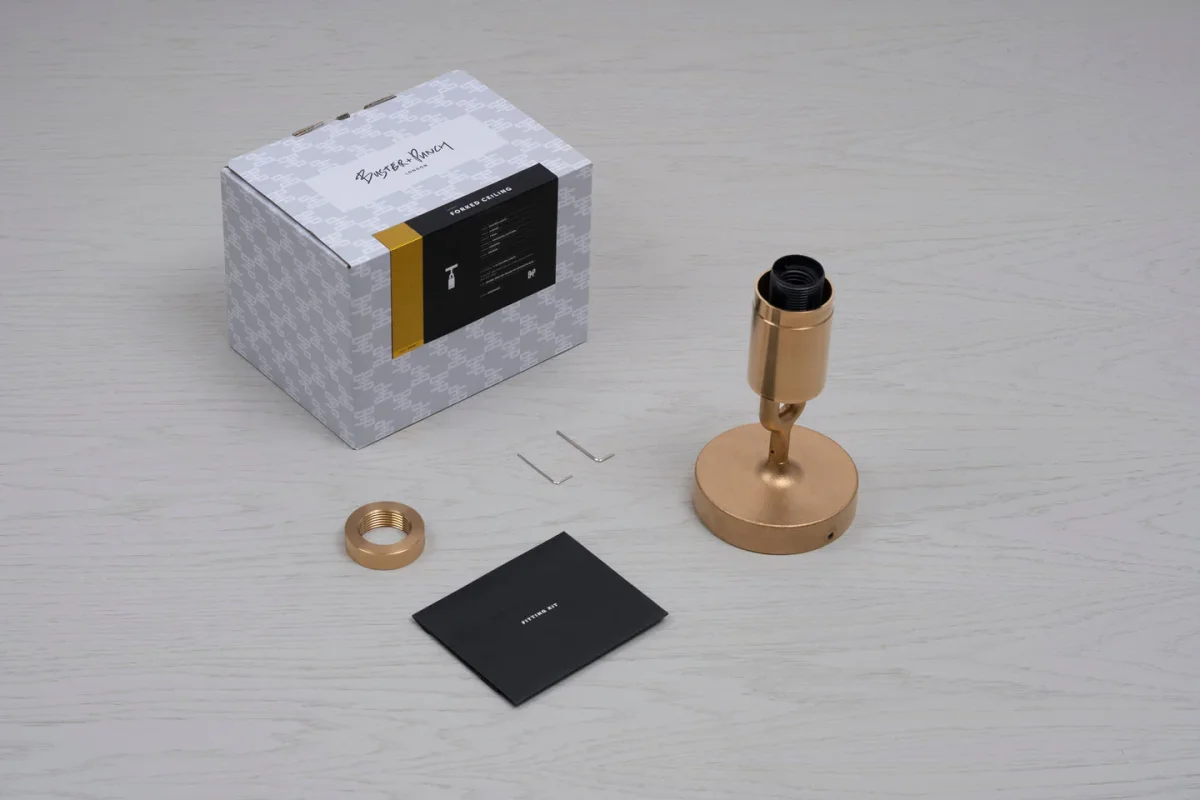 Med Buster + Punchs Forked taklampa får du en elegant lampa som på finaste vis kombinerar en rå mässingsfattning med en elegant skärm i munblåst rökfärgat glas. Fattningen är dekorerad med Buster + Punchs karaktäristiska linjerade mönster.