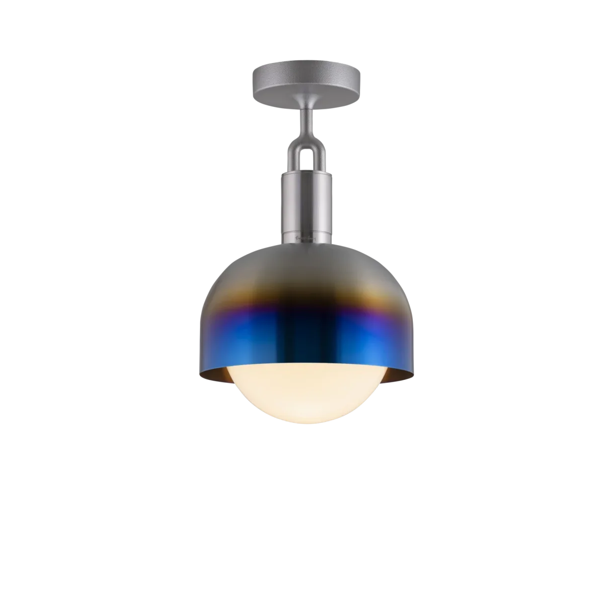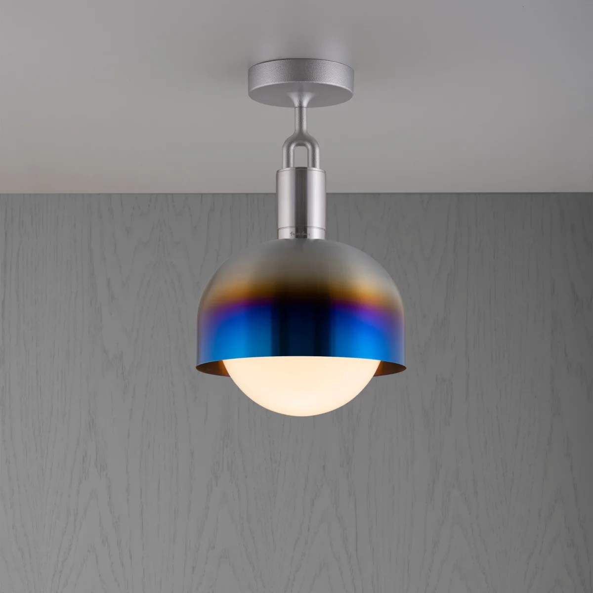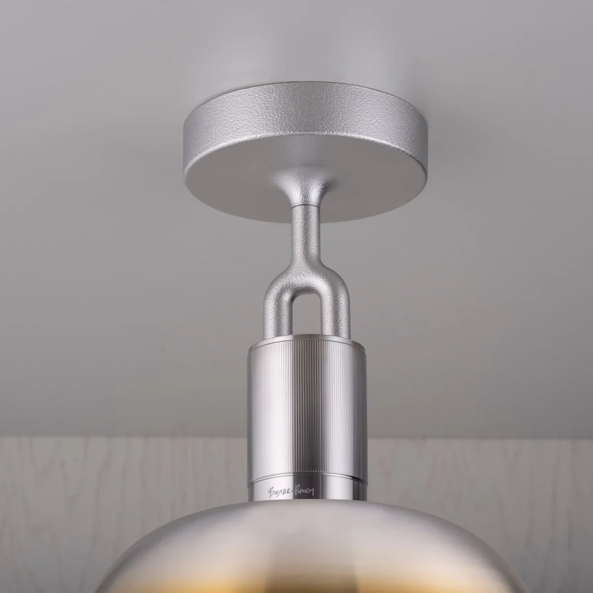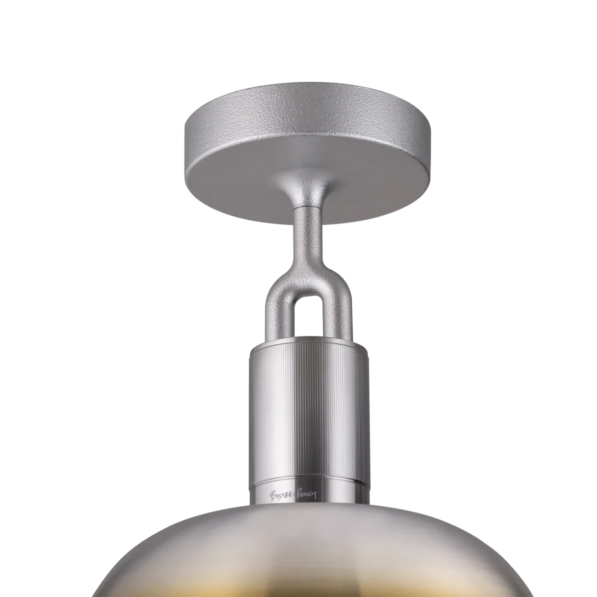 Med Buster + Punchs Forked taklampa får du en elegant lampa med en rå fattning och skärm i bränt stål samt en ljuskälla i opalglas. Fattningen är dekorerad med Buster + Punchs karaktäristiska linjerade mönster.