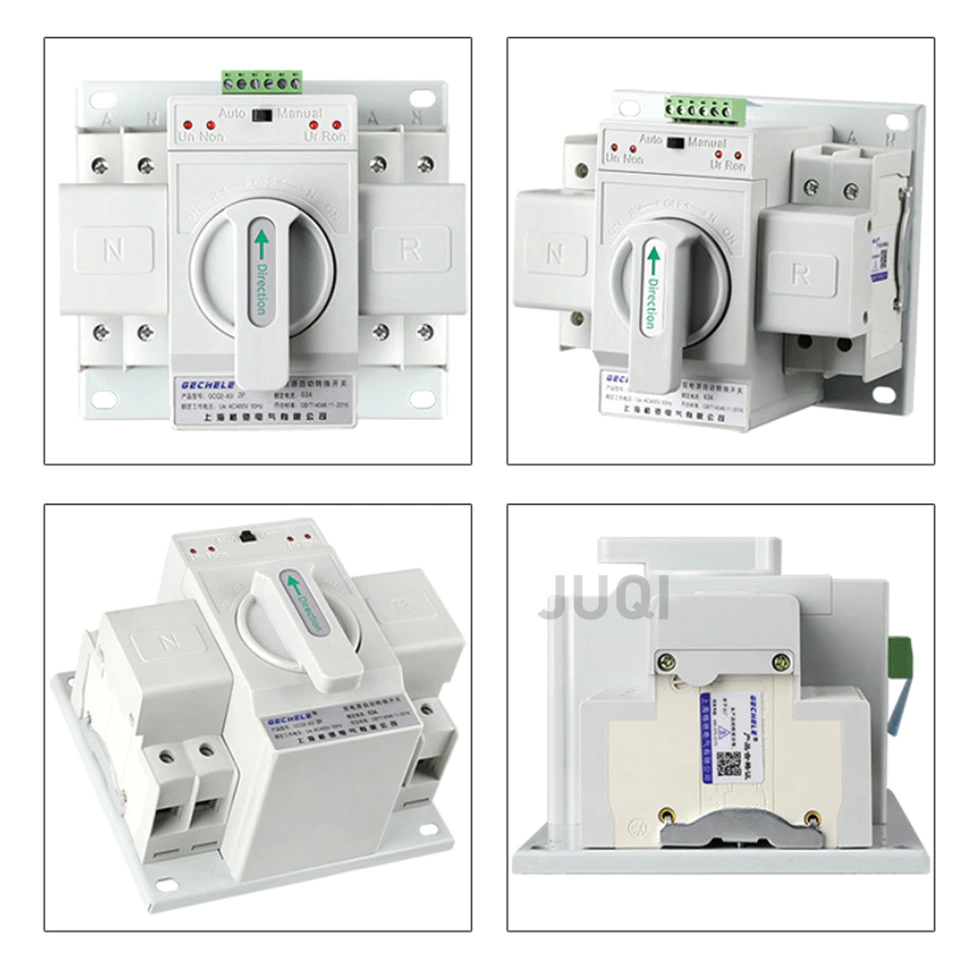 Automatic transfer switch/Överföringsomkopplare(Omkopplare/Relä, elektroniska switchar ). Detta är för dig som vill kunna styra över strömmen och ha en annan källa än elnätet. Elnätet går in i ena sidan och i den andra kan du ha en powerwall/powercell eller batteri med inverter för att förse strömmen. Den slår automatisk över till nätet om den inte får rätt spänningen från Invertern. Denna köpte vi till ett projekt som inte blev av och säljer den därmed billigt. Dessa kostar oftast många 1000 lappar! Överföringstiden är på under 2S så inte lika snabb som en UPS.