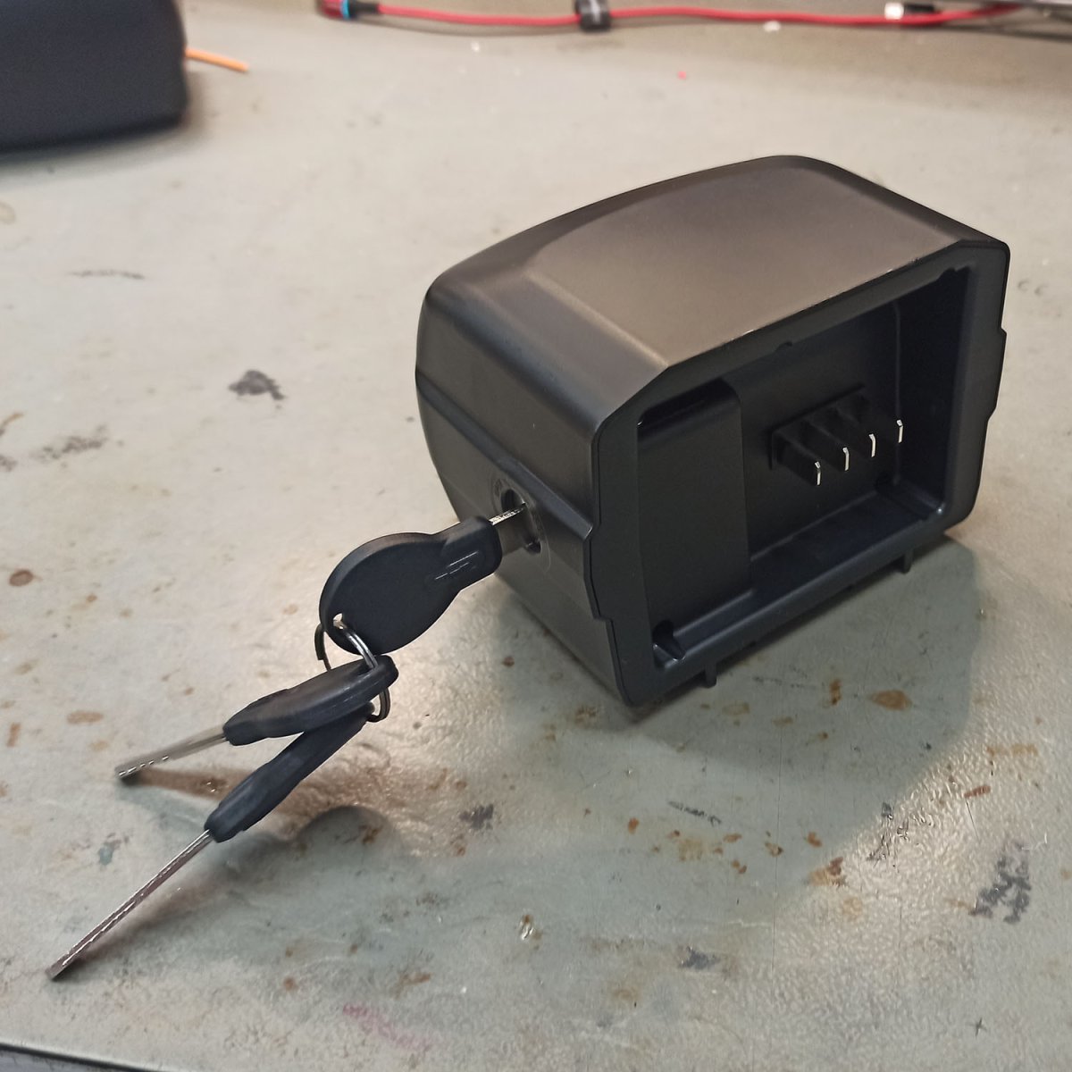 Inte original men kompatibel fäst för ENERGYPAK 300/400/500 CARRIER BATTERY. Du kan köpa hela batterifästet inkl lås/nycklar (Alternativ A) eller bara lås/nycklar (Alternativ B).