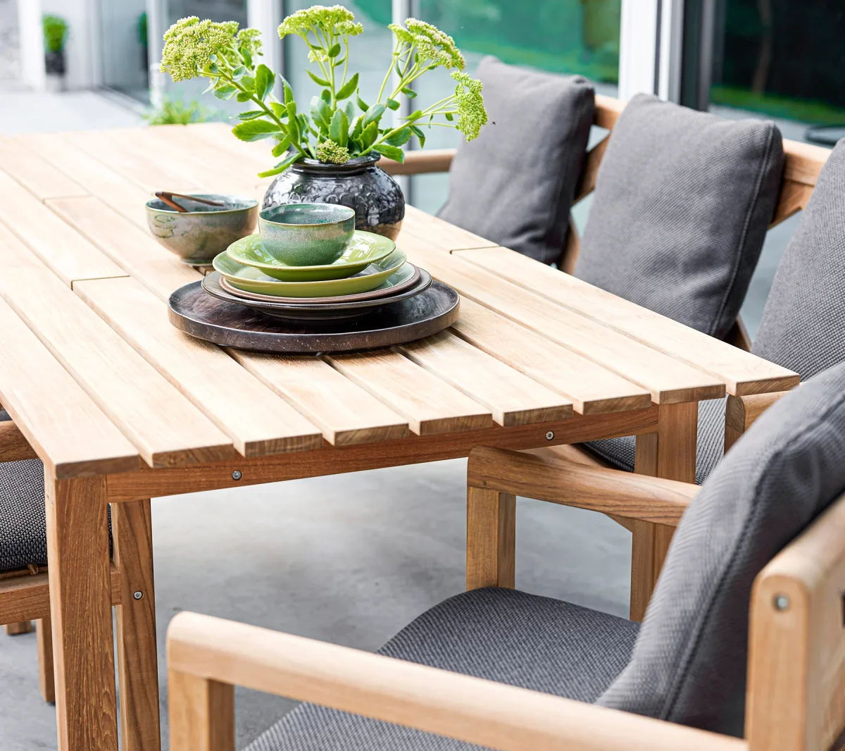 Teakträdet fälls under SVLKs certifieringssystem som säkerställer att teakproduktionen stödjer ett ansvarsfullt skogsbruk. För att bevara den gyllenbruna teakfärgen och behålla det vackra teakträdet rekommenderar vi att du använder Cane-line Teak Care-produkter.