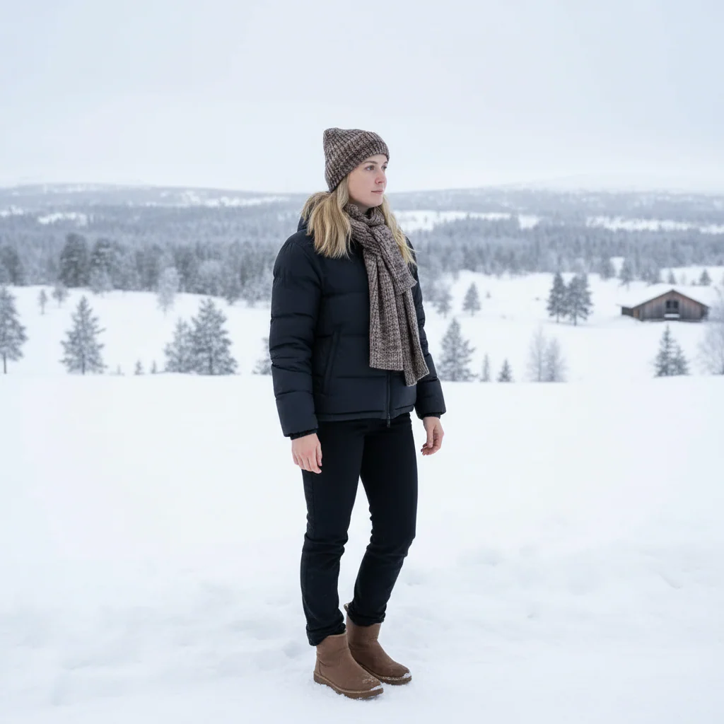 Stickningen är tät men följsam. Halsduken är skön att bära direkt mot huden, tack vare den mjuka kvaliteten på garnet, och känns lyxigt omslutande utan att bli för tung. I ändarna kan det finnas små tofsar eller fransar som ger en avslappnad och mysig touch. Denna halsduk är perfekt för kalla vinterpromenader, där den både skyddar mot kyla och ger en känsla av ombonad trygghet.