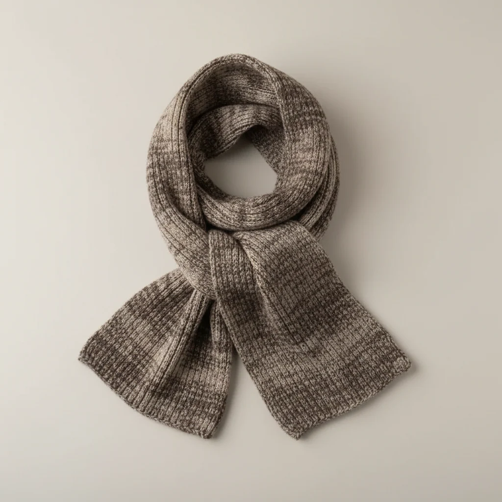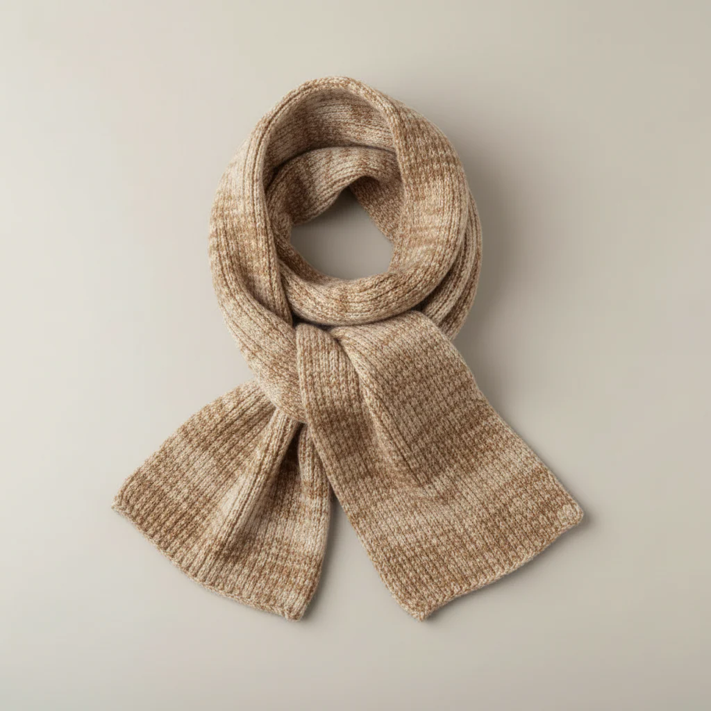Mjuk sjal/halsduk som passar perfekt nu när kylan är här. En mysig stickad halsduk i beige eller brun melerad färg är lång och generös, perfekt att svepa flera varv runt halsen för maximal värme. Den är stickad med ett tjockt, mjukt garn som har en melerad effekt, där beige och bruna nyanser smälter samman i ett vackert, naturligt mönster. Denna blandning av färger ger halsduken ett varmt, jordnära utseende, samtidigt som den känns modern och lätt att matcha med olika plagg.