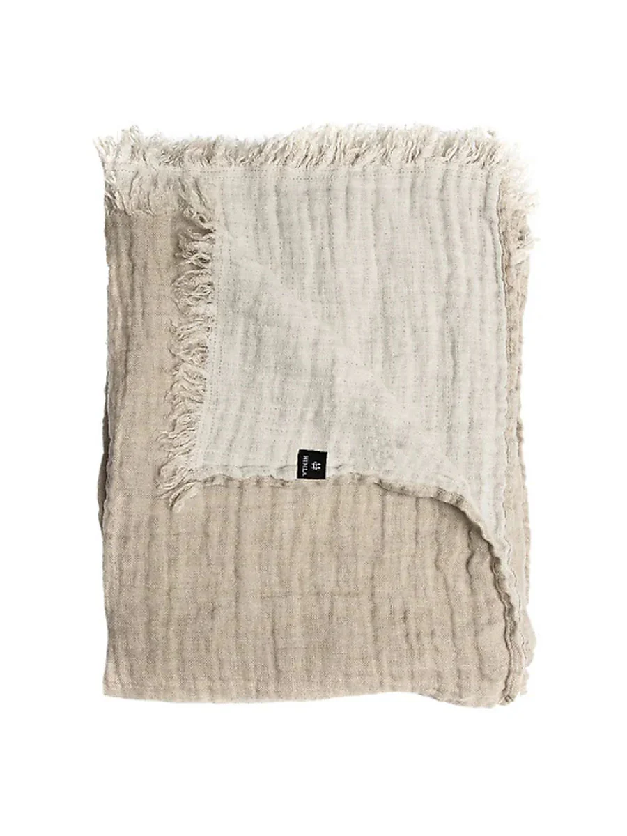 Hannelin pläd från Himla. Mjuk pläd i dubbelvävt linne som blivit tvättad efter sömnad för att få sitt krinklade utseende. Fållade långsidor och fransar på kortsidor. En mysig pläd som passar lika perfekt i soffan som över sängen eller ute en sommarkväll.