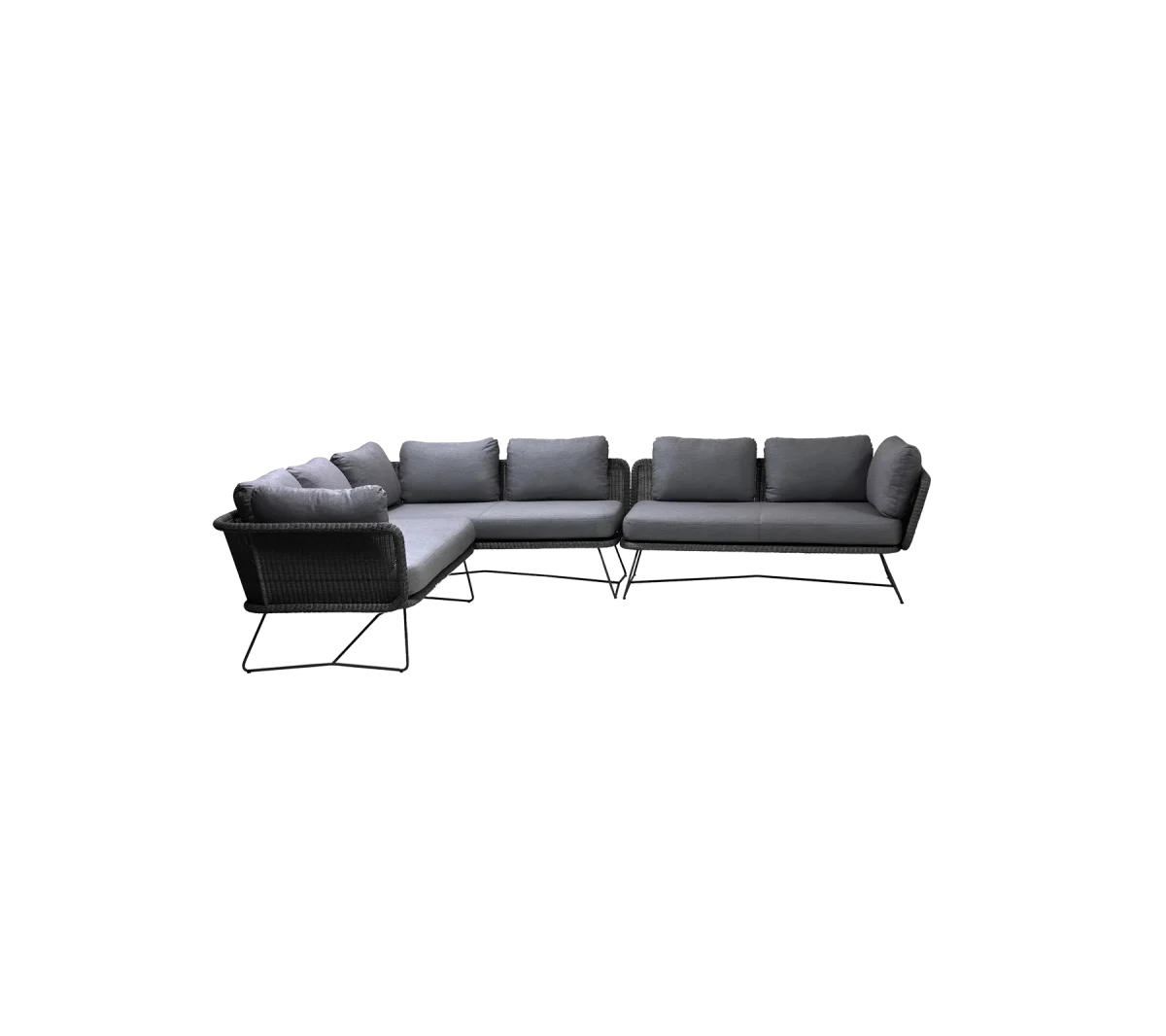 Horizon är en estetiskt tilltalande och minimalistisk serie med skarpa linjer och ett modernt uttryck. Horizon är ett modulärt loungekoncept som bygger på skandinavisk design med fokus på hög komfort och flexibilitet, samt en dagbädd. Loungemöblerna kan arrangeras så att de passar alla behov och uterum. Horizon kan stå ensam som en enskild modul, eller kombineras till en stor hörn- eller U-soffa. Den smala ramen i stål ger ett lätt svävande utseende, som tillsammans med den flätade sitsen ramar in möbeln på ett elegant sätt.