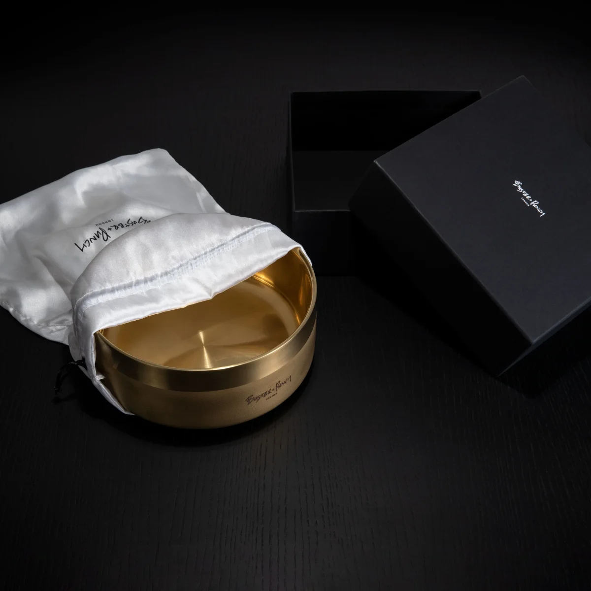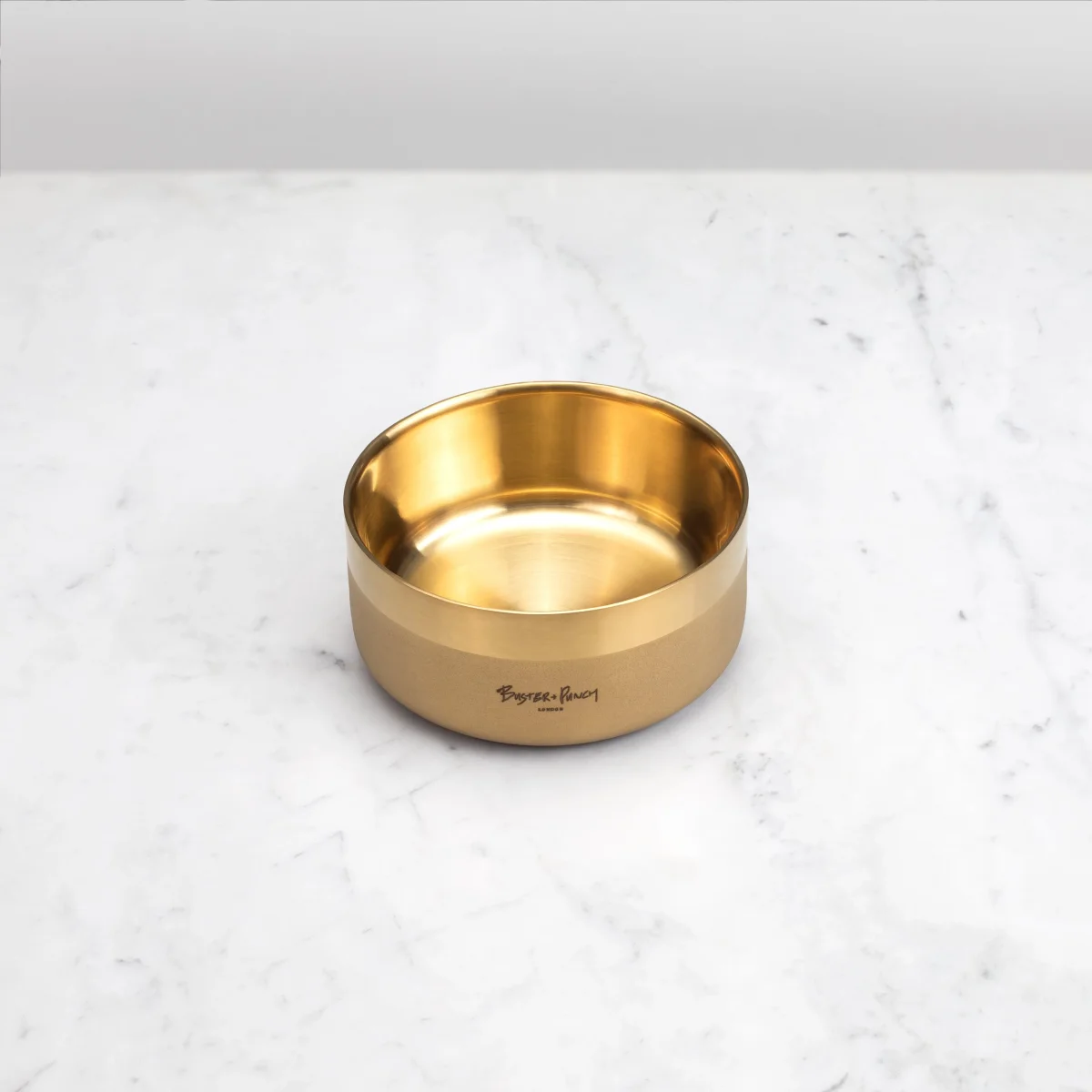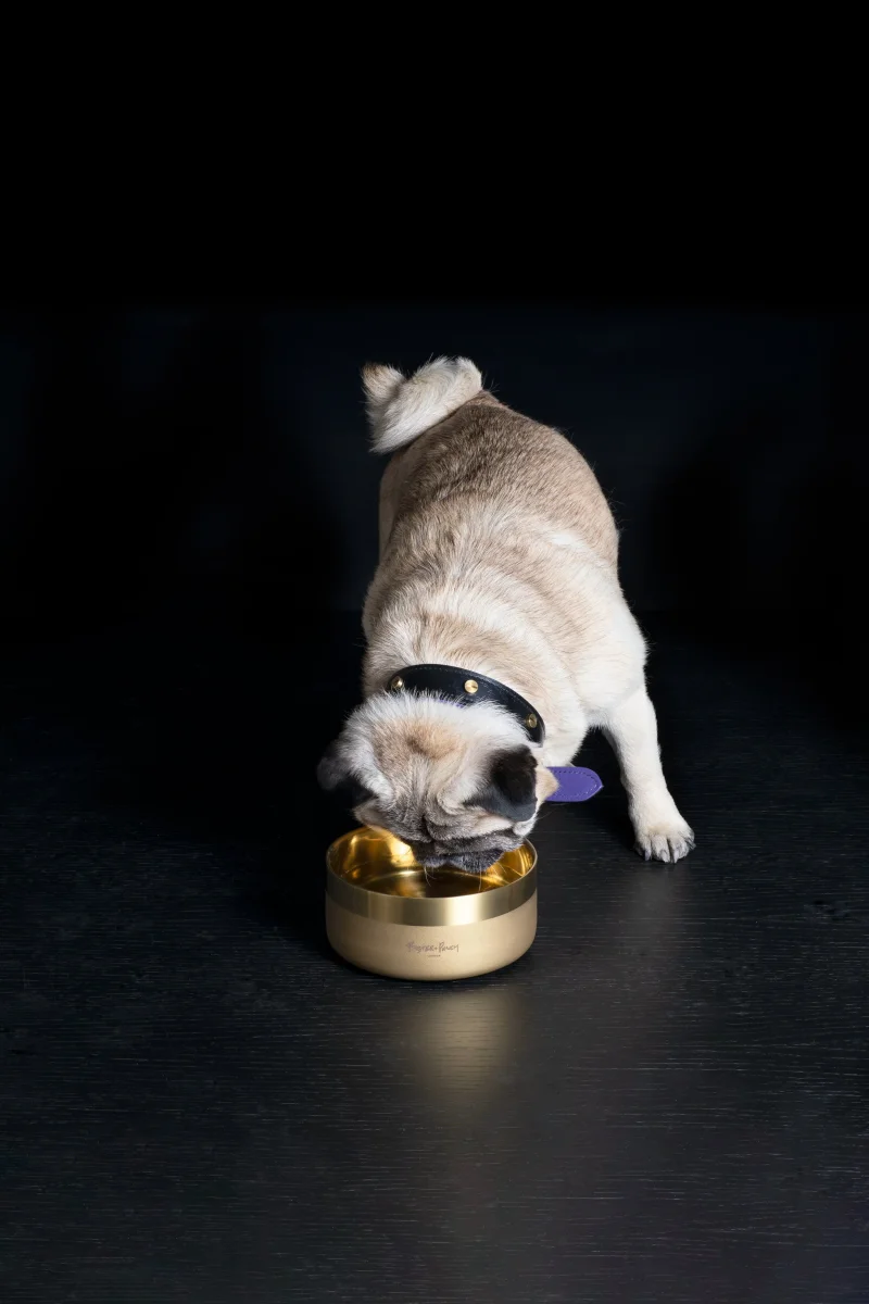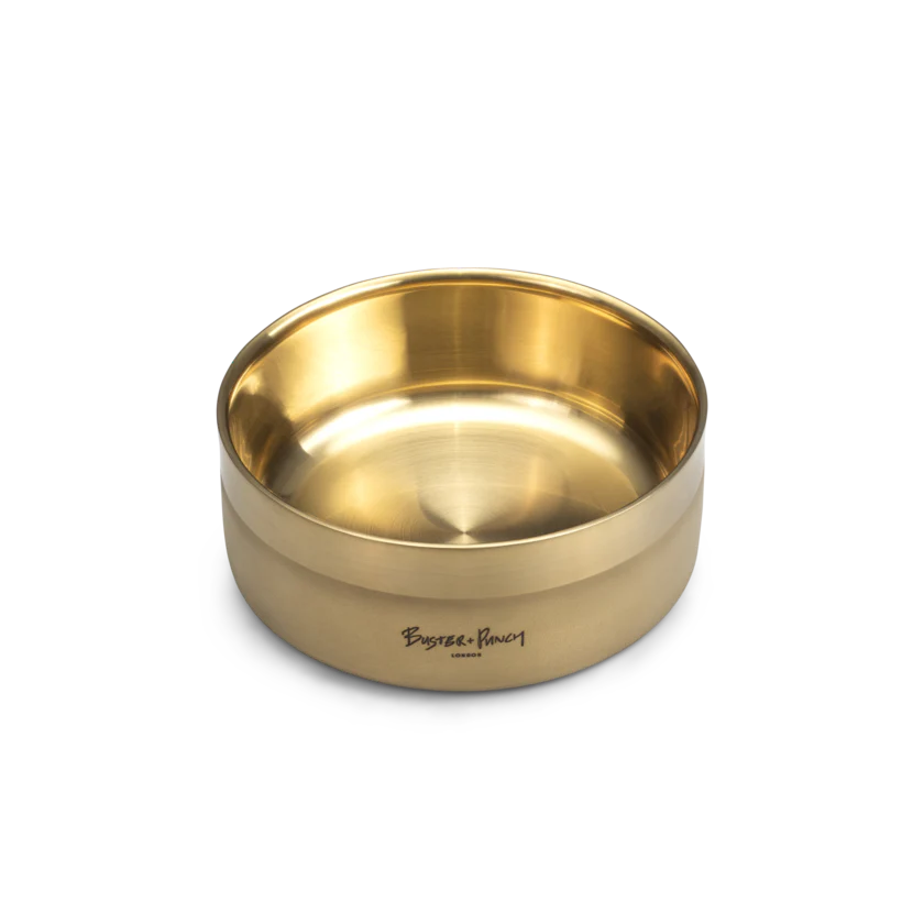 Lyxig hundskål från Buster + Punch. Skålen är gjord av rostfritt stål med mässingslook och har en snygg borstad finish. Skålen har silikon undertill vilket gör att den står stadigt.