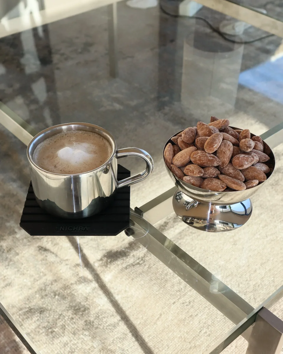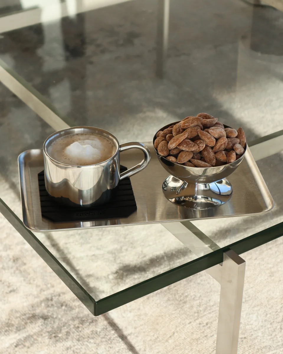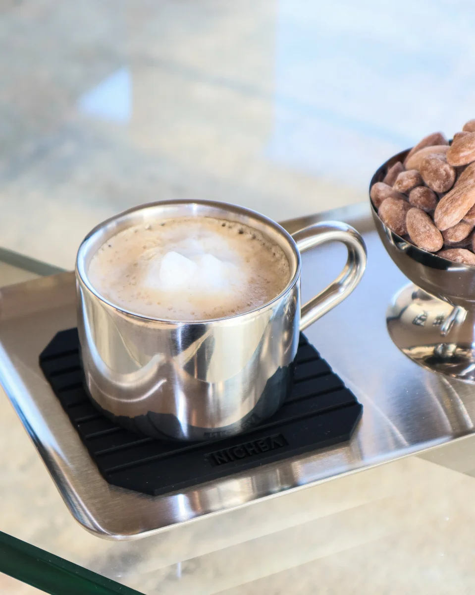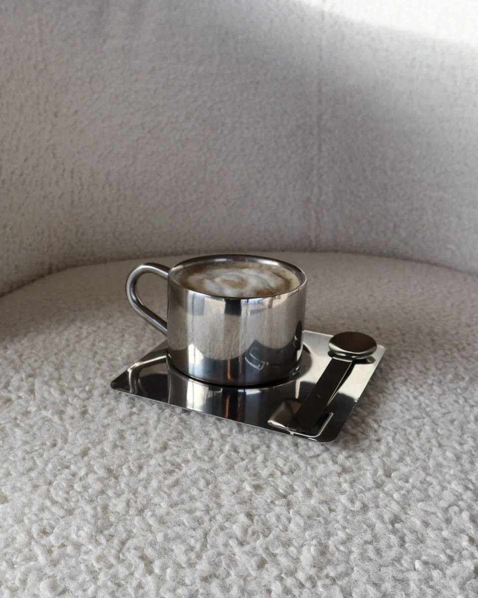 Njut av ditt kaffe med stil med detta eleganta cappuccino-kaffeset från NICHBA. Setet består av en termokopp, underkopp och sked – allt tillverkat i polerat rostfritt stål som kombinerar funktionalitet med ett exklusivt, minimalistiskt uttryck.