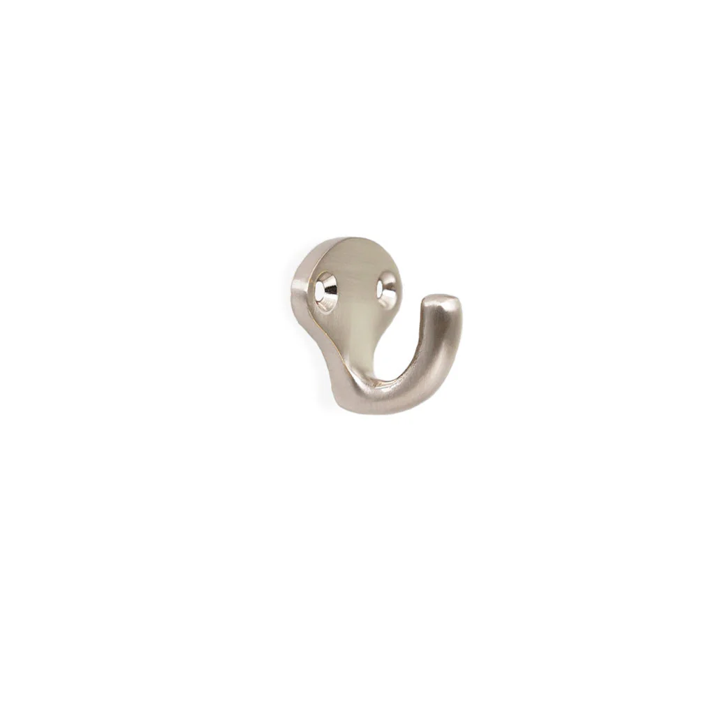 Den här kroken är tillverkad av massiv mässing med en satinförnicklad yta som är lätt att underhålla.