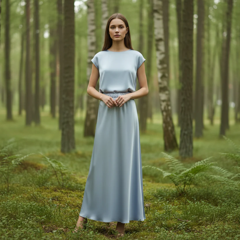 Upptäck vår vackra långa blå kjol – en tidlös klassiker som passar både till vardag och festliga tillfällen.