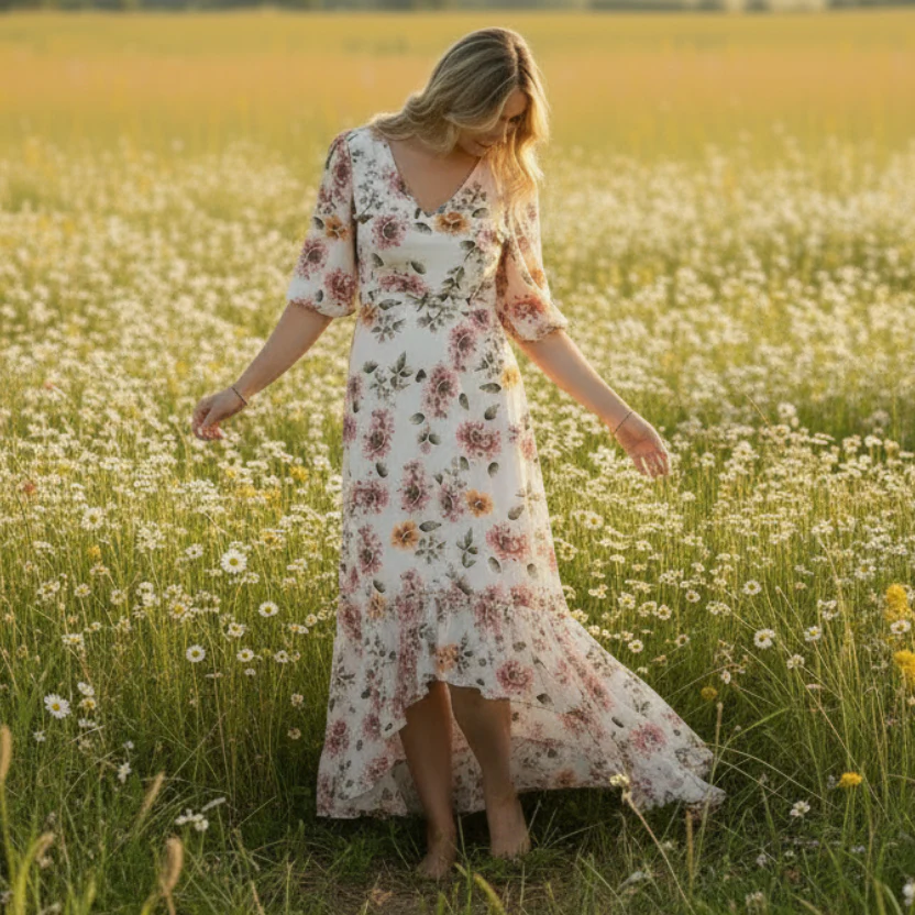 Upptäck Aveline Dress Creme/Rose – en underbart feminin och elegant klänning som snabbt blir en favorit i garderoben. Det vackra blommönstret i mjuka rosa toner mot krämfärgad botten ger ett romantiskt och somrigt uttryck.