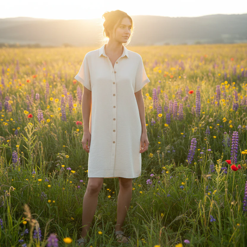 Skjortklänning Freja är en mångsidig favorit i garderoben. Den korta modellen ger ett avslappnat men stilrent uttryck – lika fin som klänning som när den bärs öppen över jeans och linne. Den klassiska skjortdesignen gör Freja enkel att styla för olika tillfällen. Bär den knäppt som en feminin vardagsklänning, eller öppen som en lätt overshirt för en mer lager-på-lager look. Perfekt för både vardag och lediga dagar när du vill känna dig bekväm utan att kompromissa med stilen. Materialet faller mjukt och ger en luftig känsla, vilket gör den till ett självklart val under vår och sommar – men också enkel att använda året runt med rätt styling.
