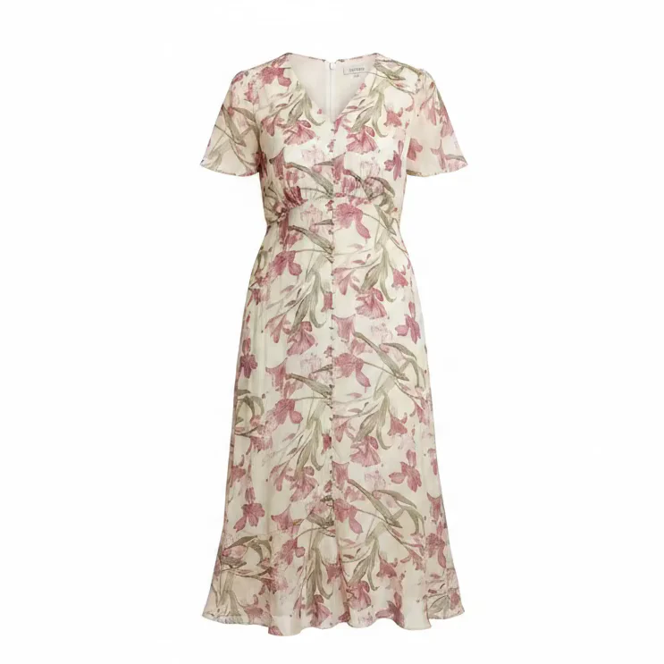 Klänning Grace är en romantisk och feminin klänning i mjuka färgtoner med ett vackert mönster. De fina klädda knapparna ger klänningen liv och rörelse samtidigt som de förstärker det eleganta uttrycket. Knytband som knyts bakåt och framhäver din figur.
